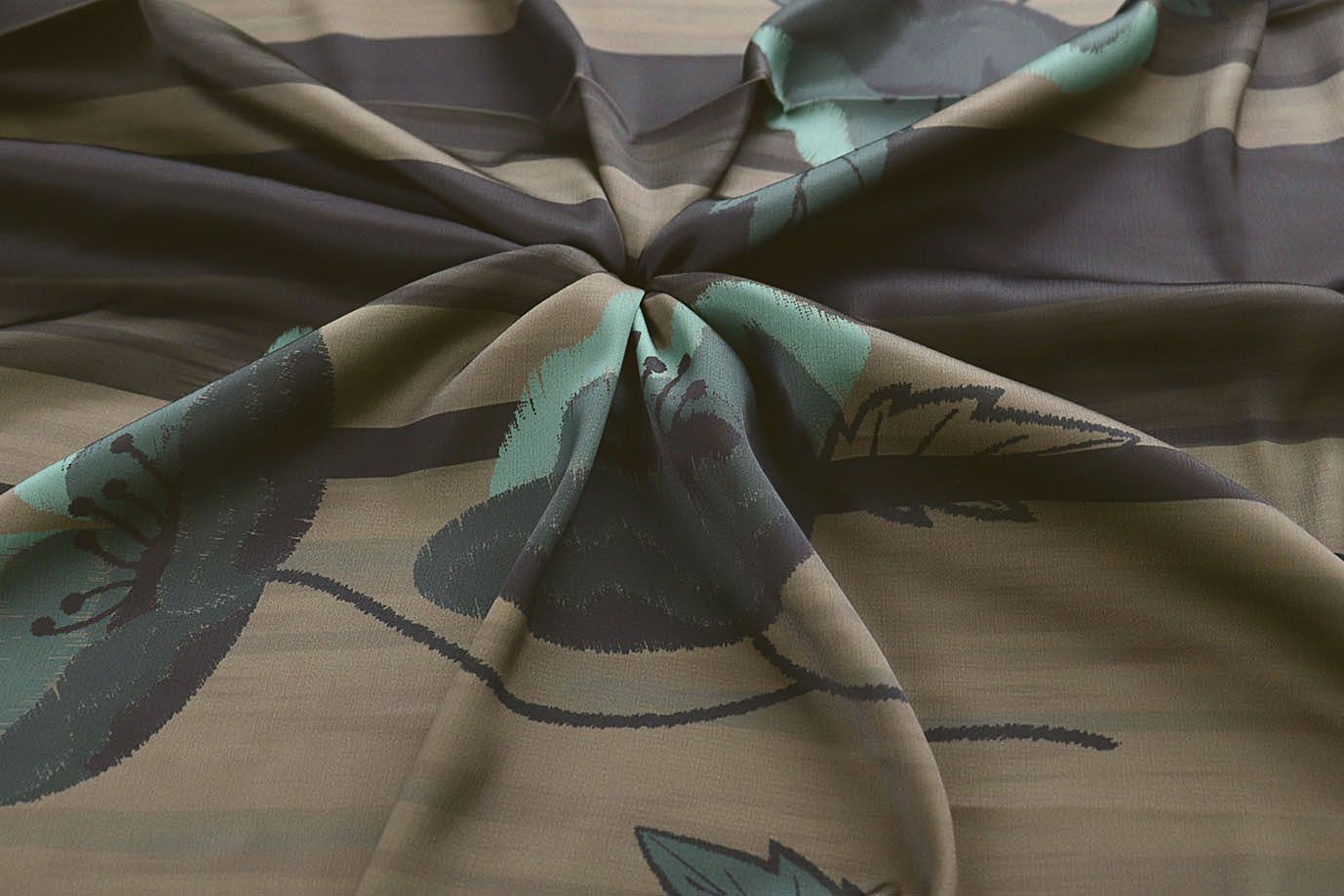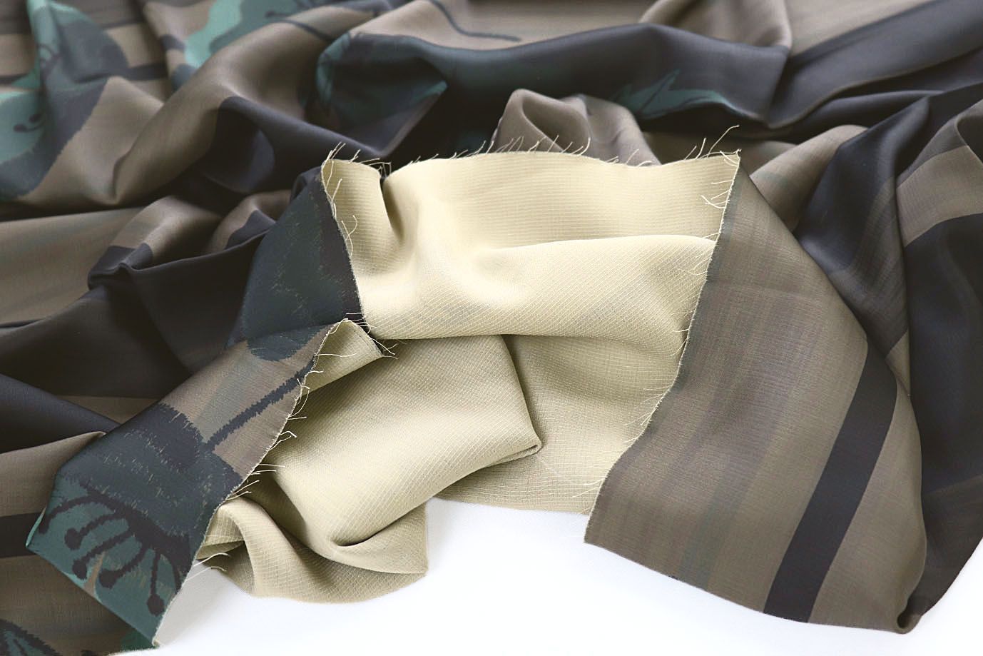 Шелк "Джулия" принт/листья черно-болотно-кремовые 4026-PY/D#3/C#3