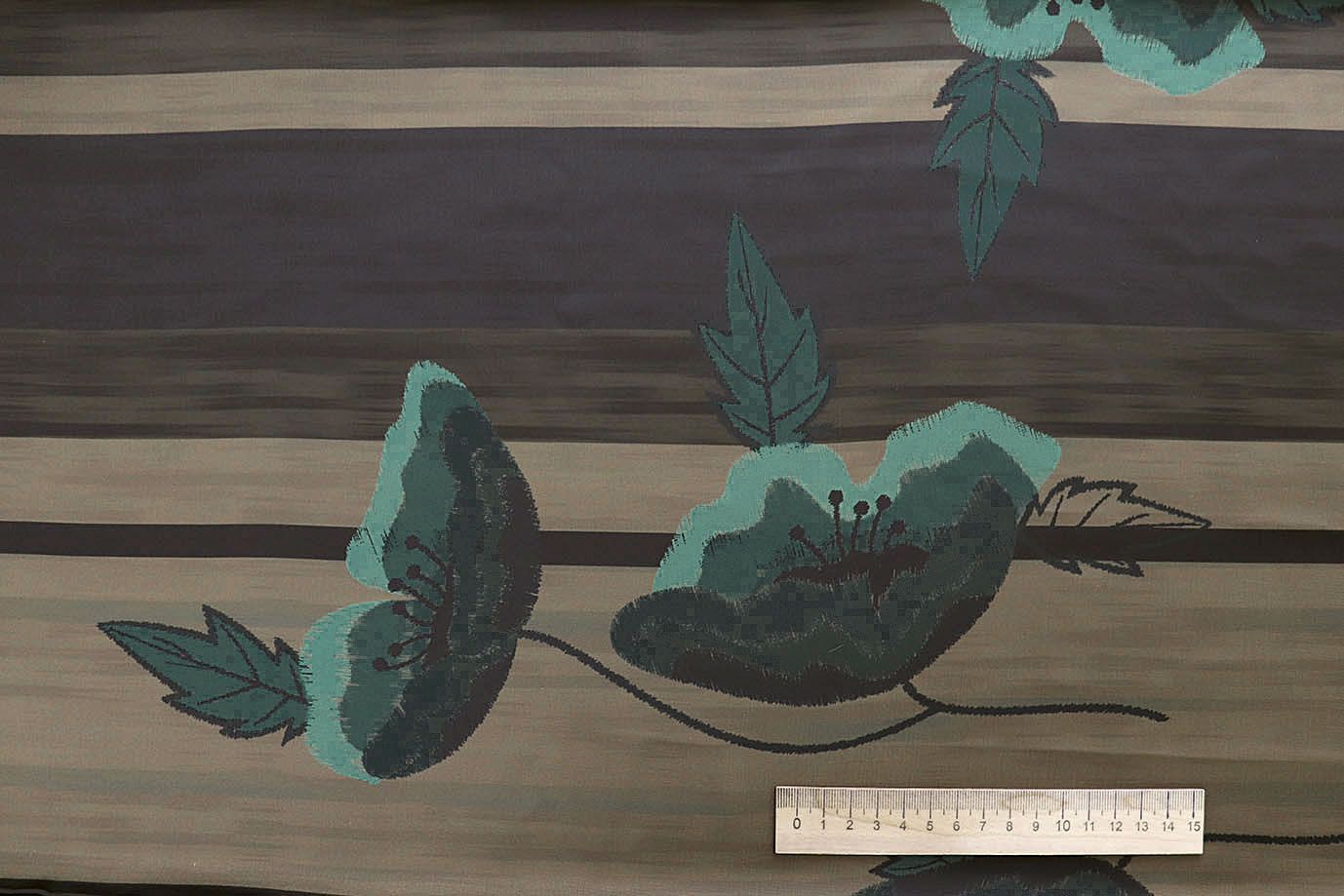 —Шелк "Джулия" принт/цветы светло-темно-изумрудные на оранжево-сером 4026-PY/D#1/C#3 33 пог/м.