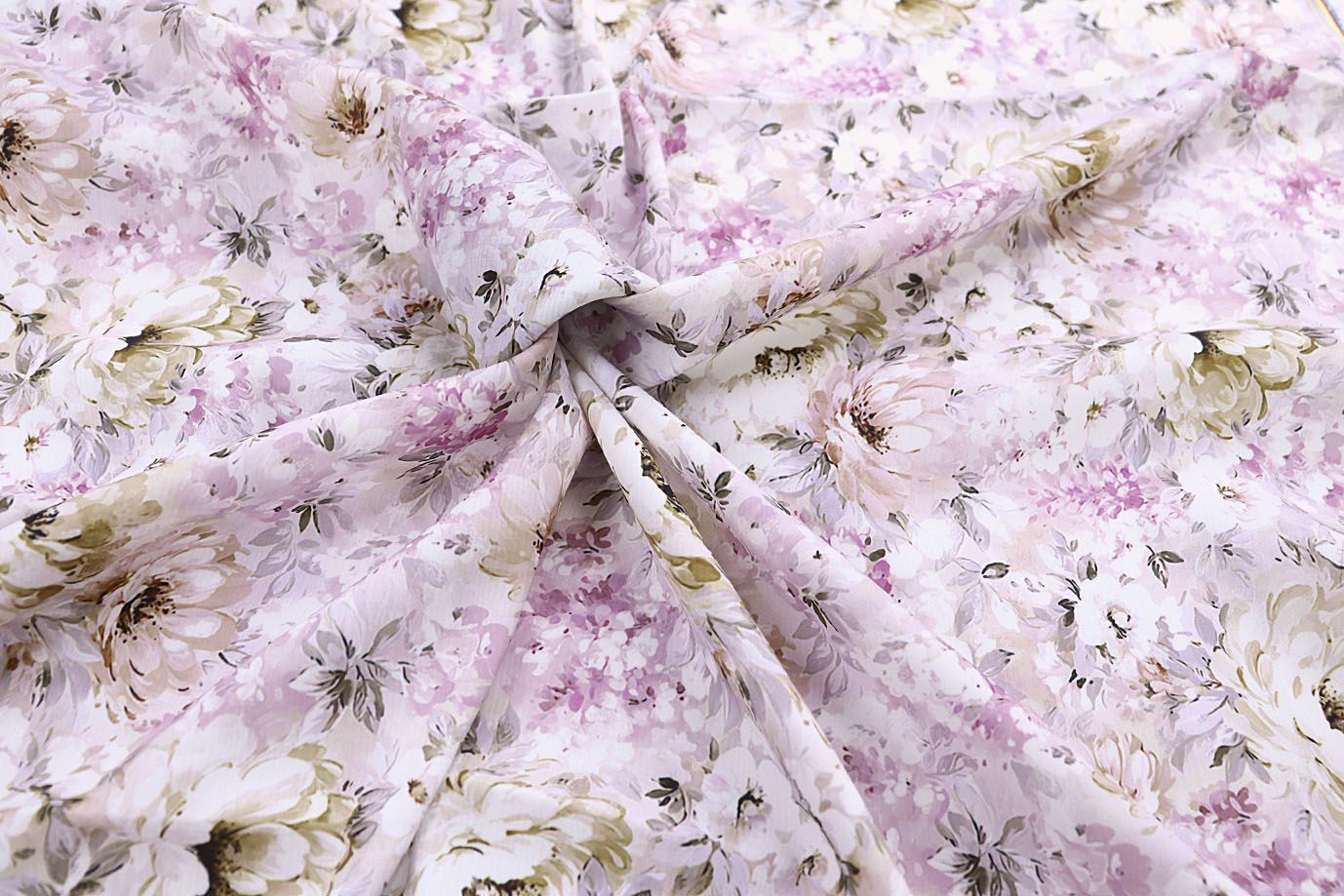 Шелк "Джулия" принт/цветы розовые на молочном 4178-PY/D#1/C#2