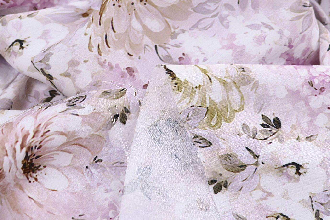 Шелк "Джулия" принт/цветы розовые на молочном 4178-PY/D#1/C#2 35 пог/м.