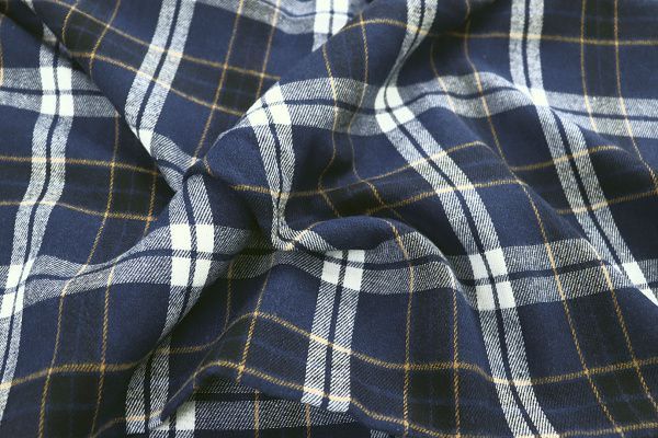 —Рубашечная ткань принт/клетка бело-желтая на синем 1418-PY/D#14/C#2 30 пог/м.