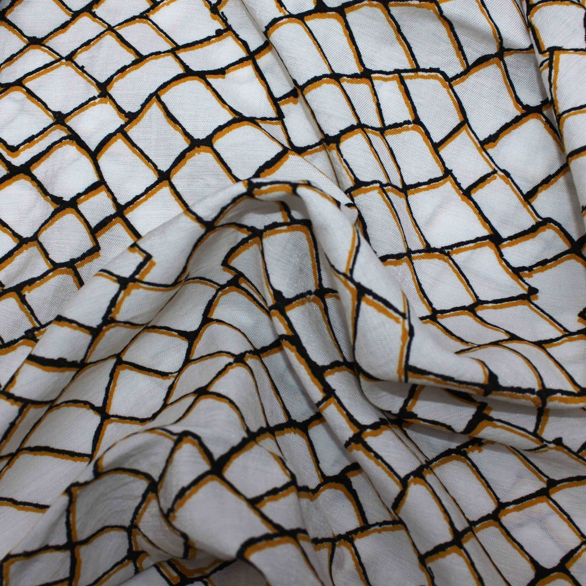 Нейлон вискоза N/R принт/клетка черно-оранжевая на белом VT-10388/D#4/C#1 не использовать! 25 пог/м.
