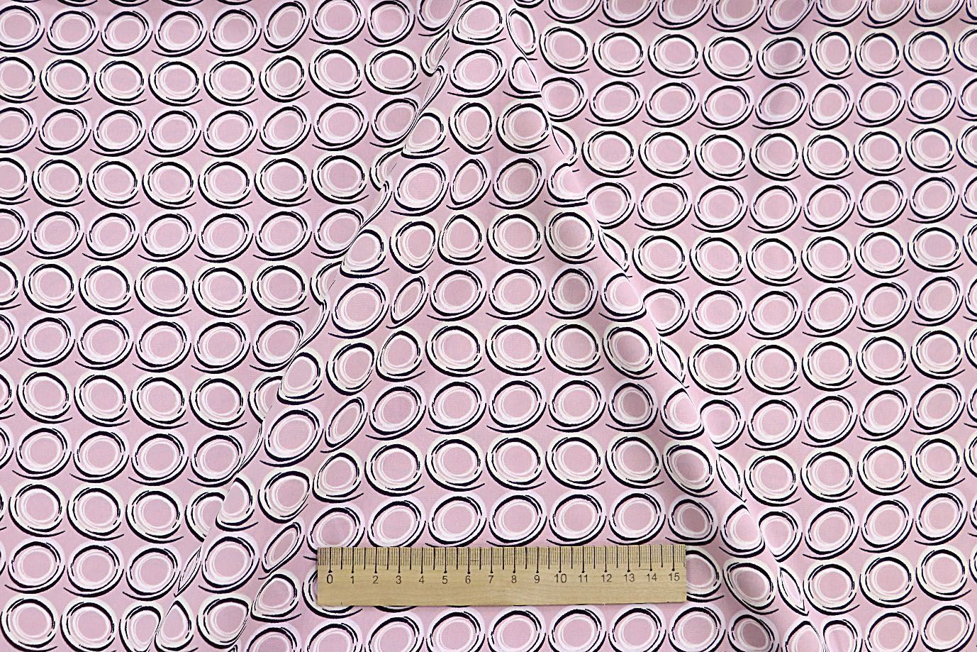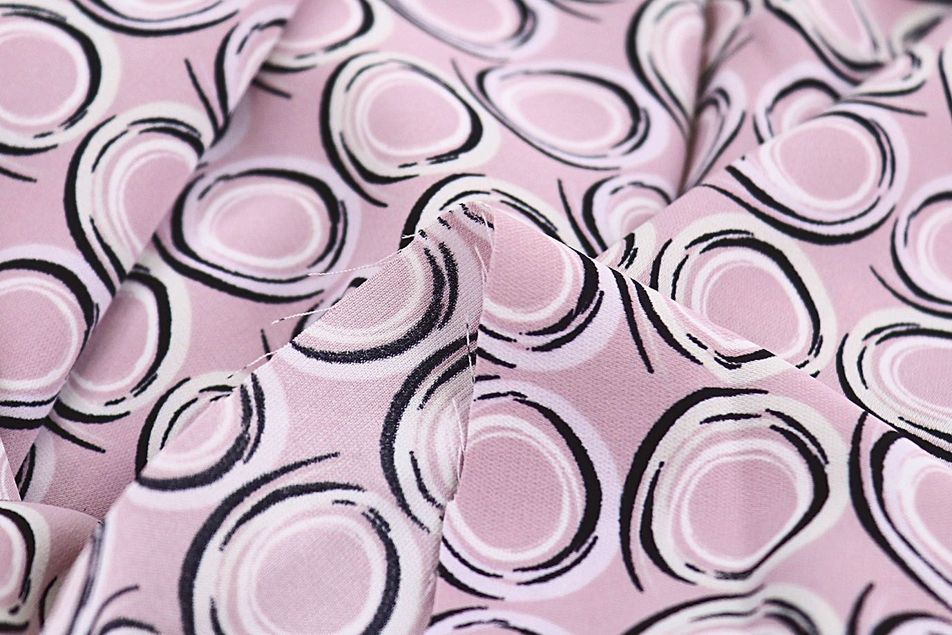 Блузочная ткань "SPH" принт/круги черно-белые на розовом 3621-PY/D#7/C#3 35 пог/м.
