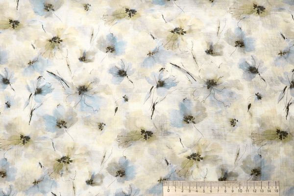 Вуаль принт/цветы васильково-желтые на молочном 4100-PY/D#3/C#1 (12379) 34 пог/м.