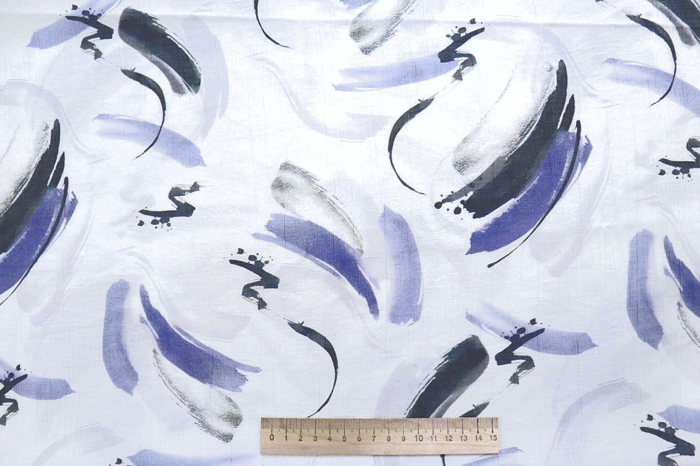 —Вуаль "Медея" принт/мазки сине-черные на белом 12521/D#3/C#3 33 пог/м.