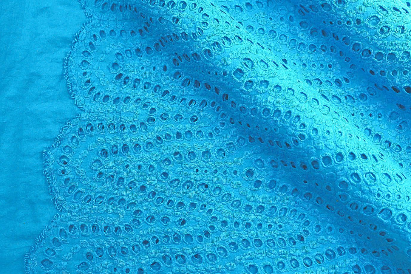 Хлопок "Батист" жатка с вышивкой/ярко-голубой 3202-PY/D#3/C#5 (EU4272)