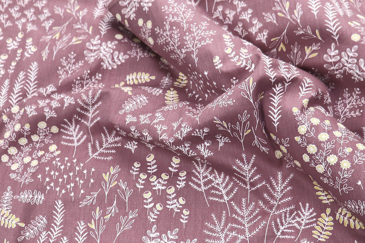 —Хлопок сатин плотный принт/ветки белые на розовом 20206/C#10 50 пог/м.