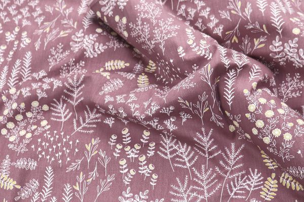 Хлопок сатин плотный принт/ветки белые на розовом 20206/C#10 50 пог/м.