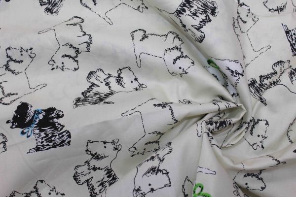 Хлопок сатин плотный принт/собачки черные на молочном 20205/C#7 50 пог/м.