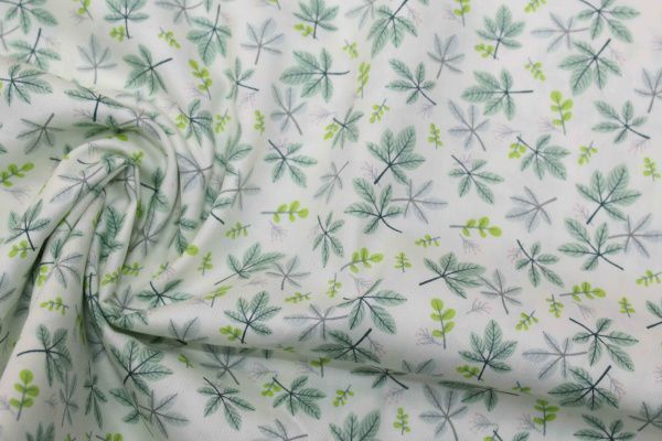 Хлопок сатин плотный принт/листья мятные на молочном 20205/C#9 50 пог/м.