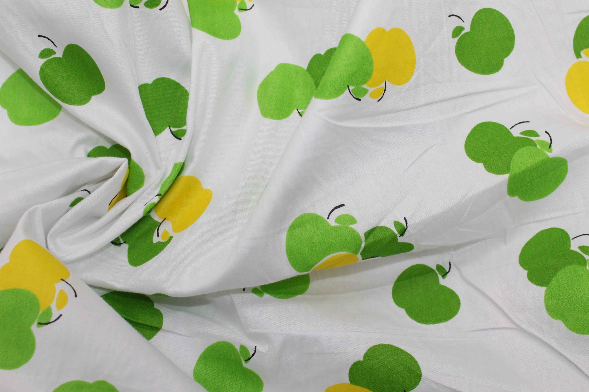 —Хлопок сатин плотный принт/яблоки желто-зеленые на белом 20203/C#2 50 пог/м.