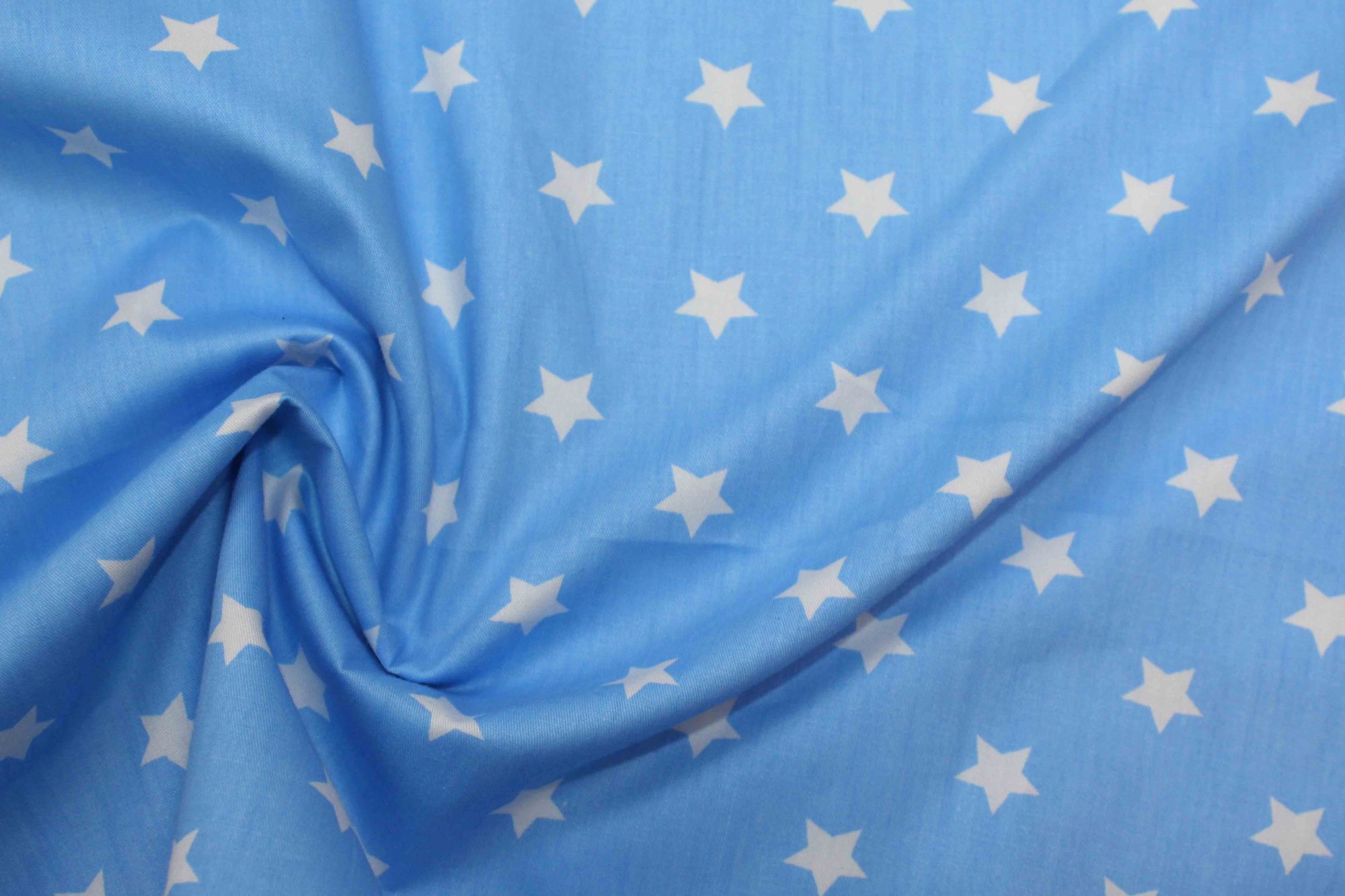 Хлопок сатин плотный принт/звезды белые на светло-синем 20203/C#25