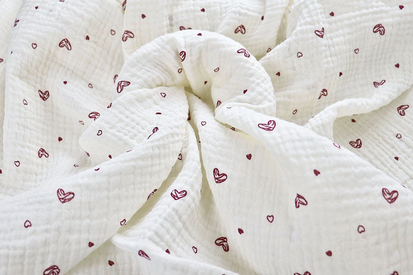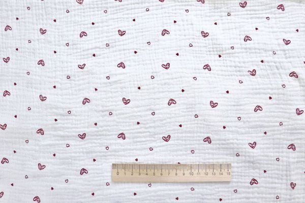 Муслин принт/сердечки бордовые на белом 4017-PY/D#1