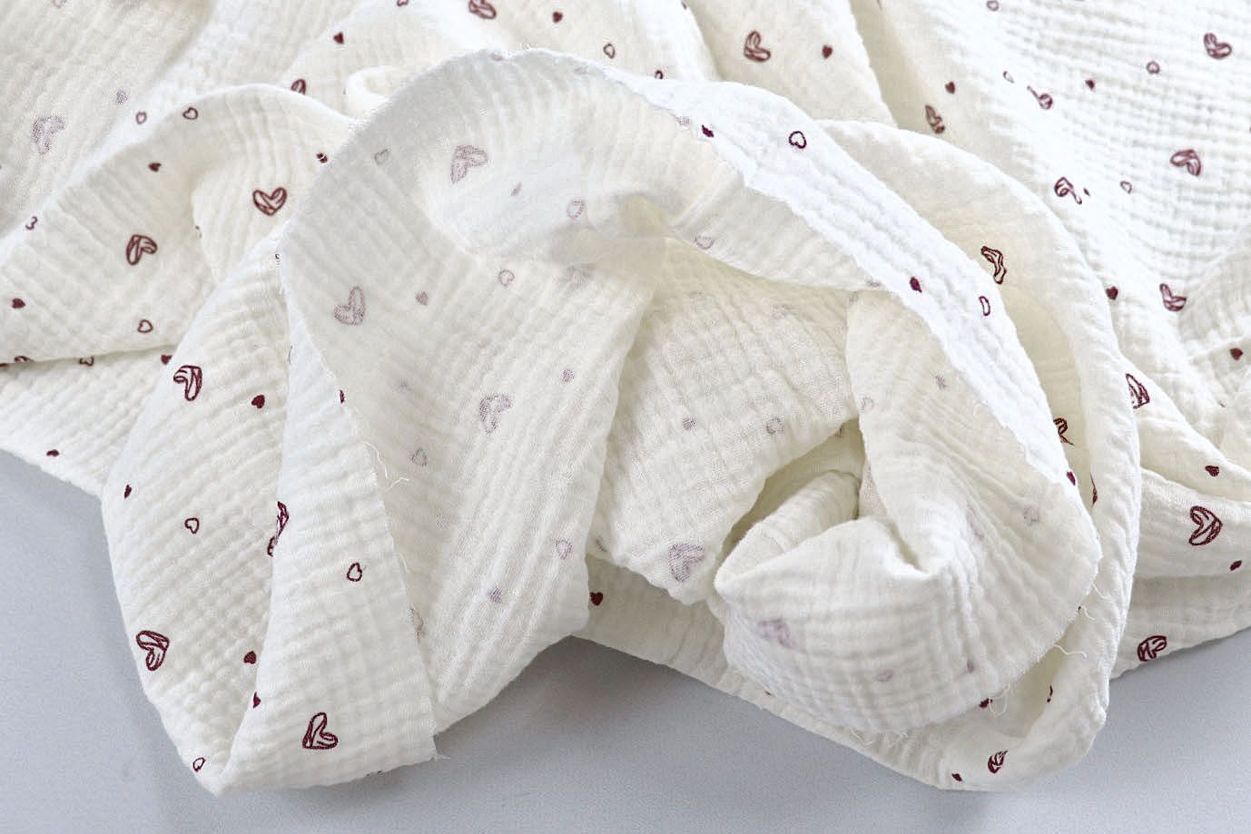 —Муслин принт/сердечки бордовые на белом 4017-PY/D#1 43 пог/м.
