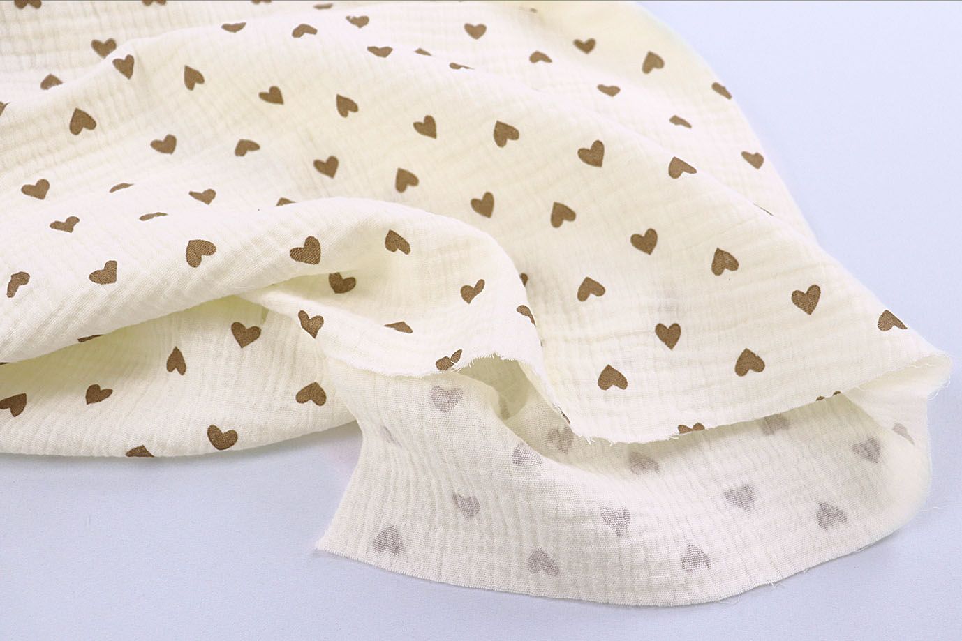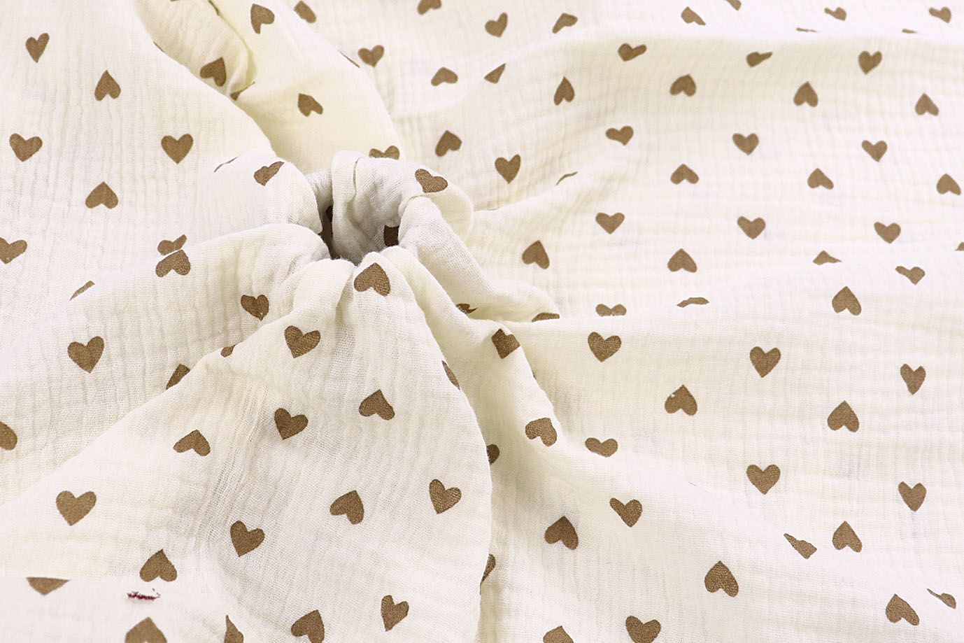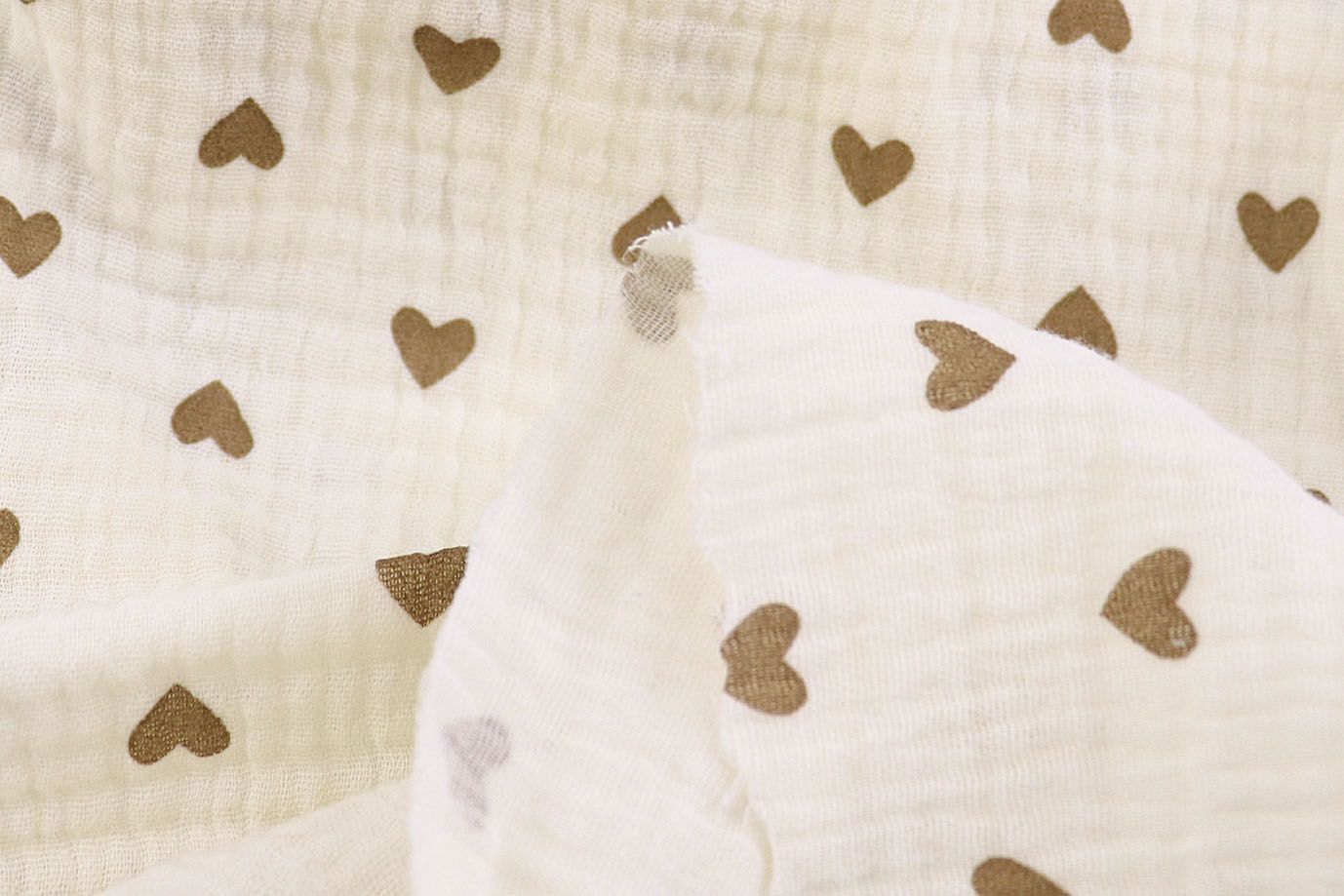 Муслин принт/сердечки коричневые на сливочном 4243-PY/D#7