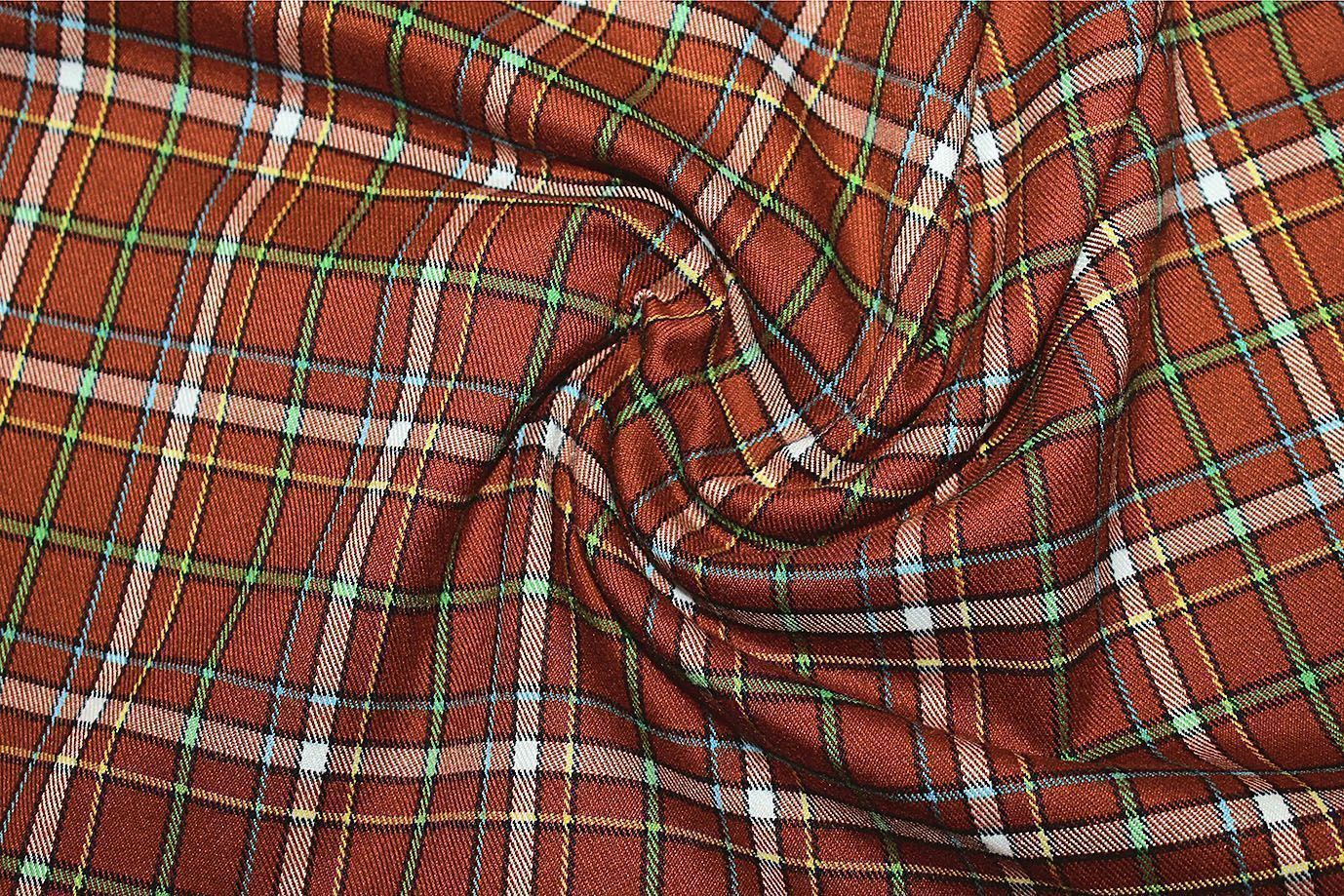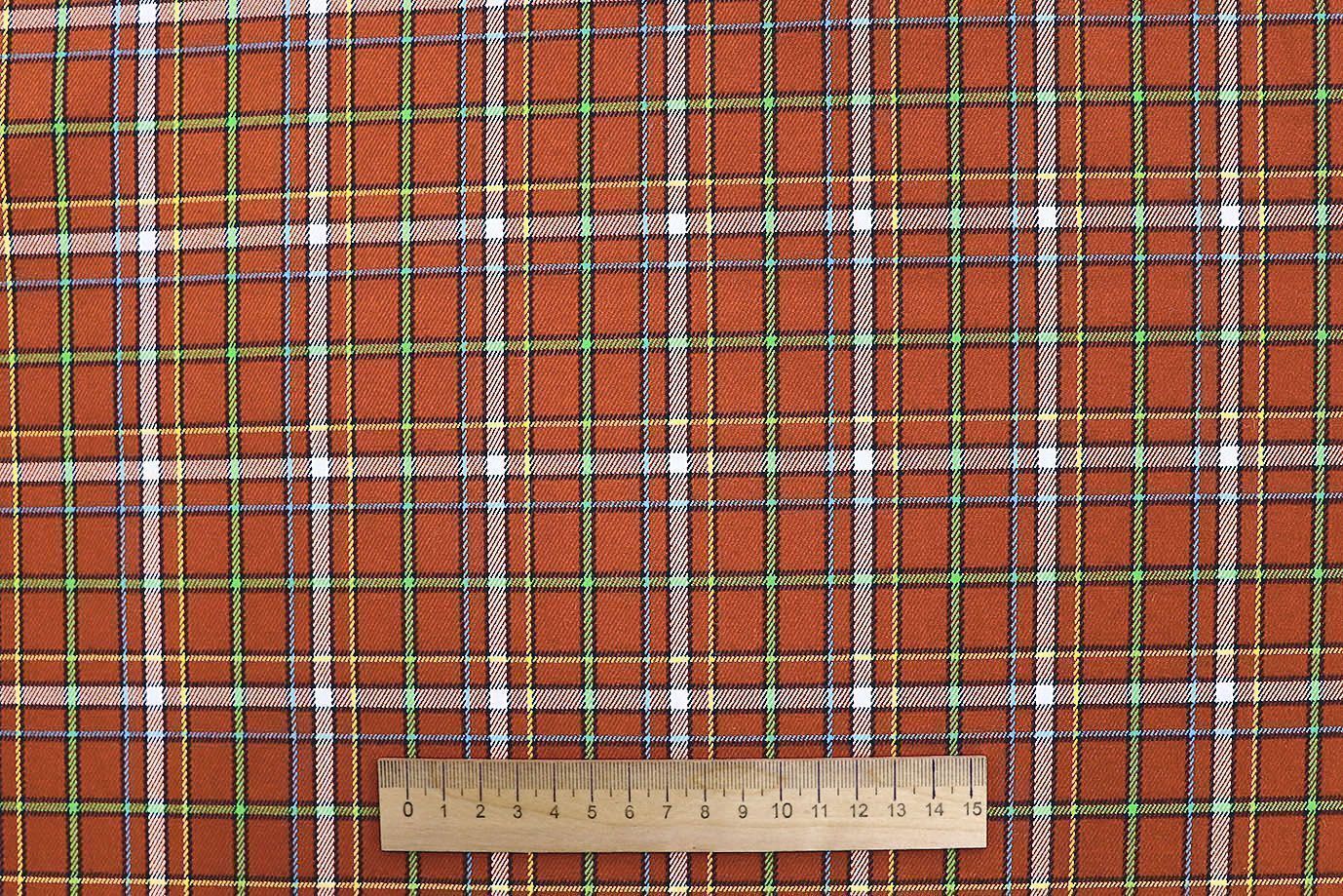 —Костюмная ткань принт/клетка оранжево-зеленая 2581-PY/D#4/C#1 30 пог/м.