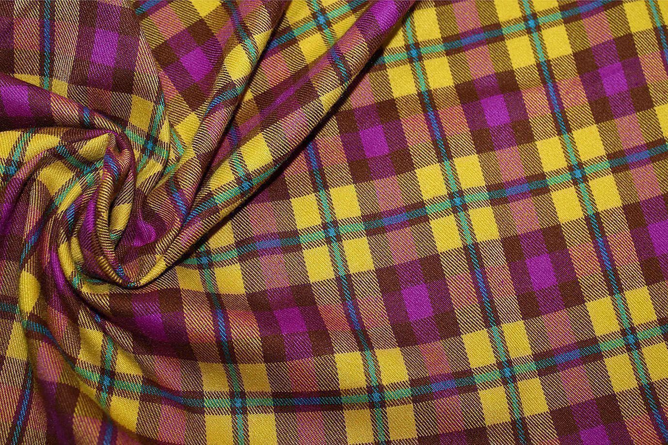 Костюмная ткань принт/клетка желто-малиновая 2581-PY/D#18/C#3 30 пог/м.