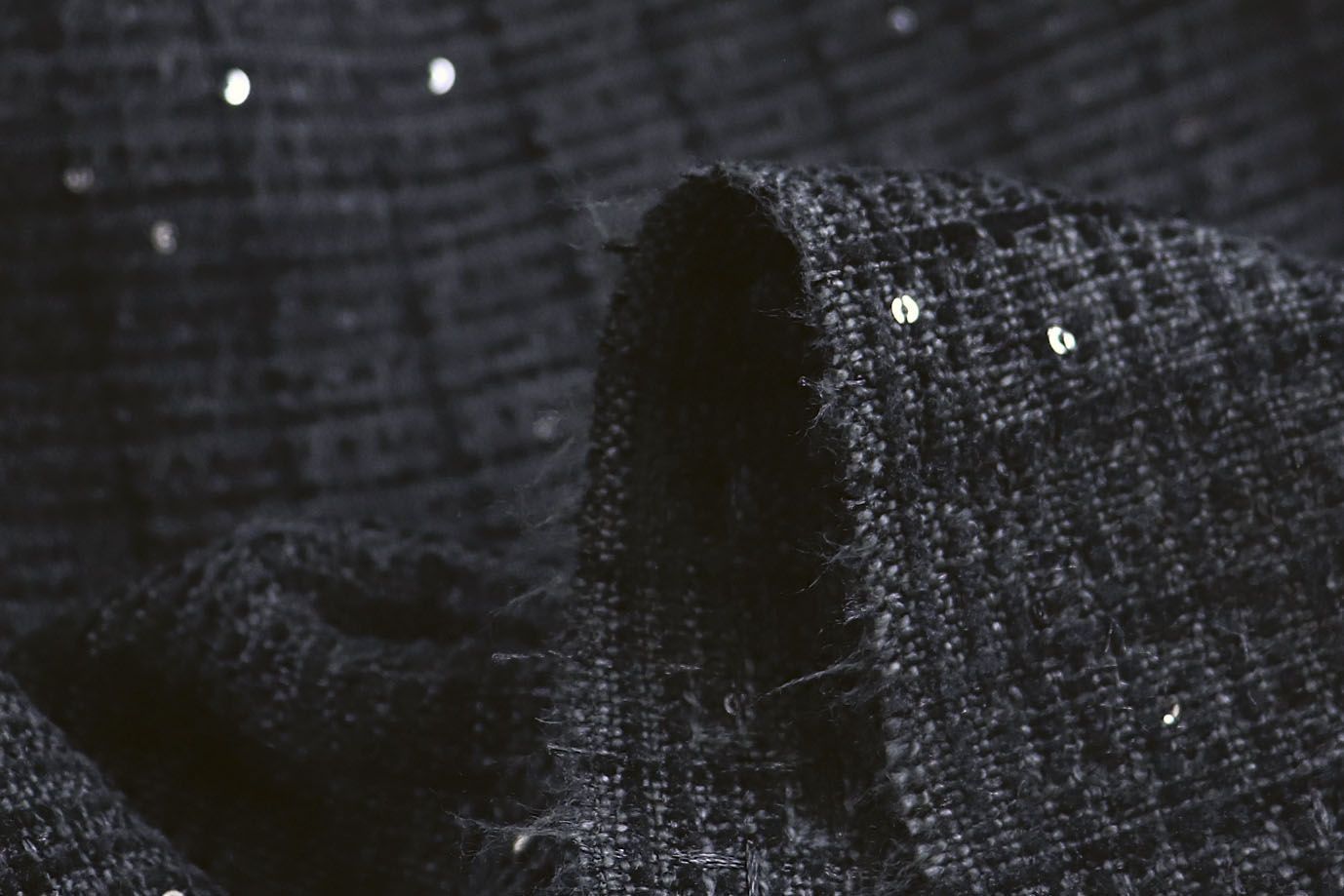 Костюмная ткань "Шанель" с пайетками/черный AP50612/D#1361-8120/C#19
