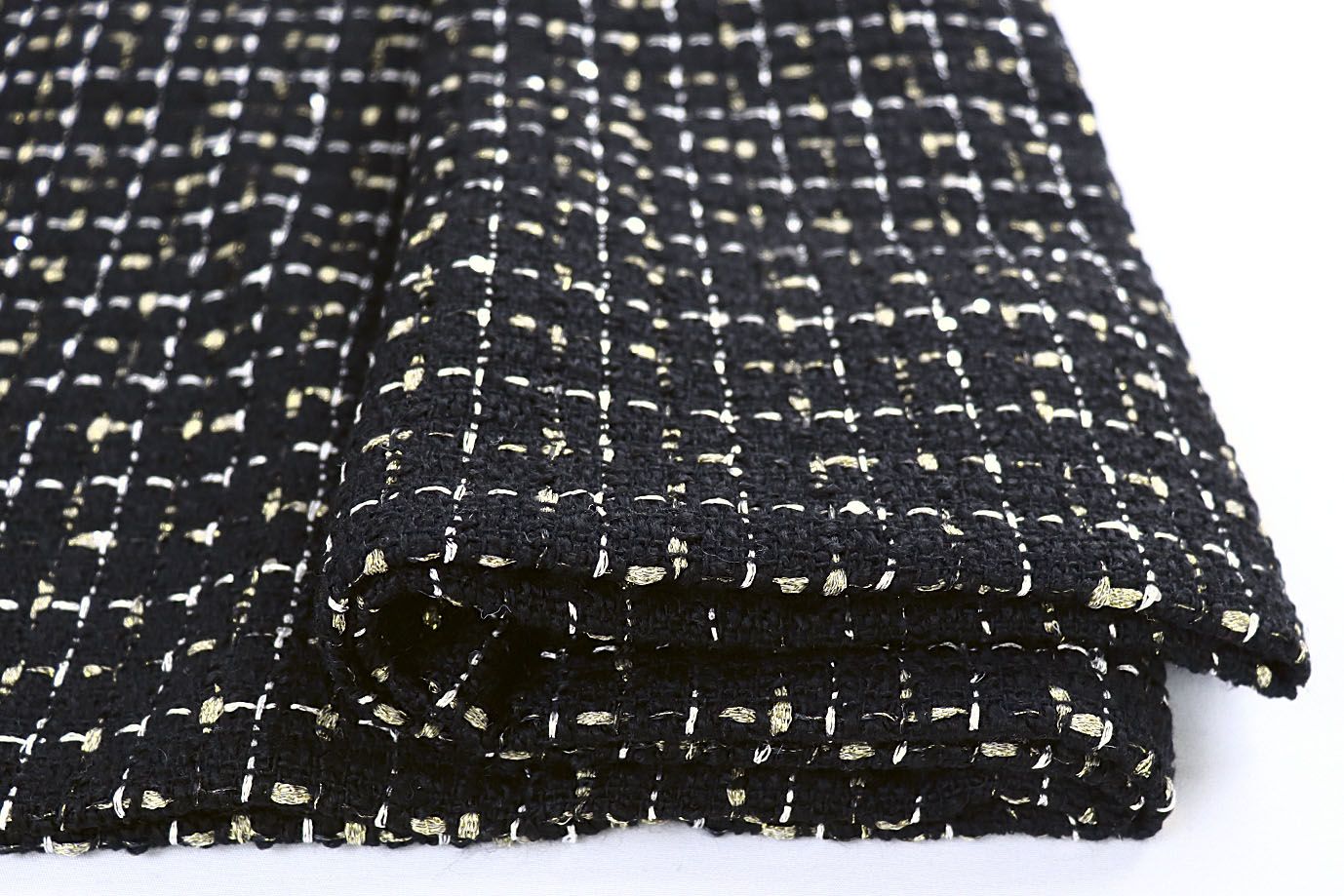 Костюмная ткань "Шанель" с люрексом и пайетками/бело-желтый на черном 1423-PY/C#1 34 пог/м.