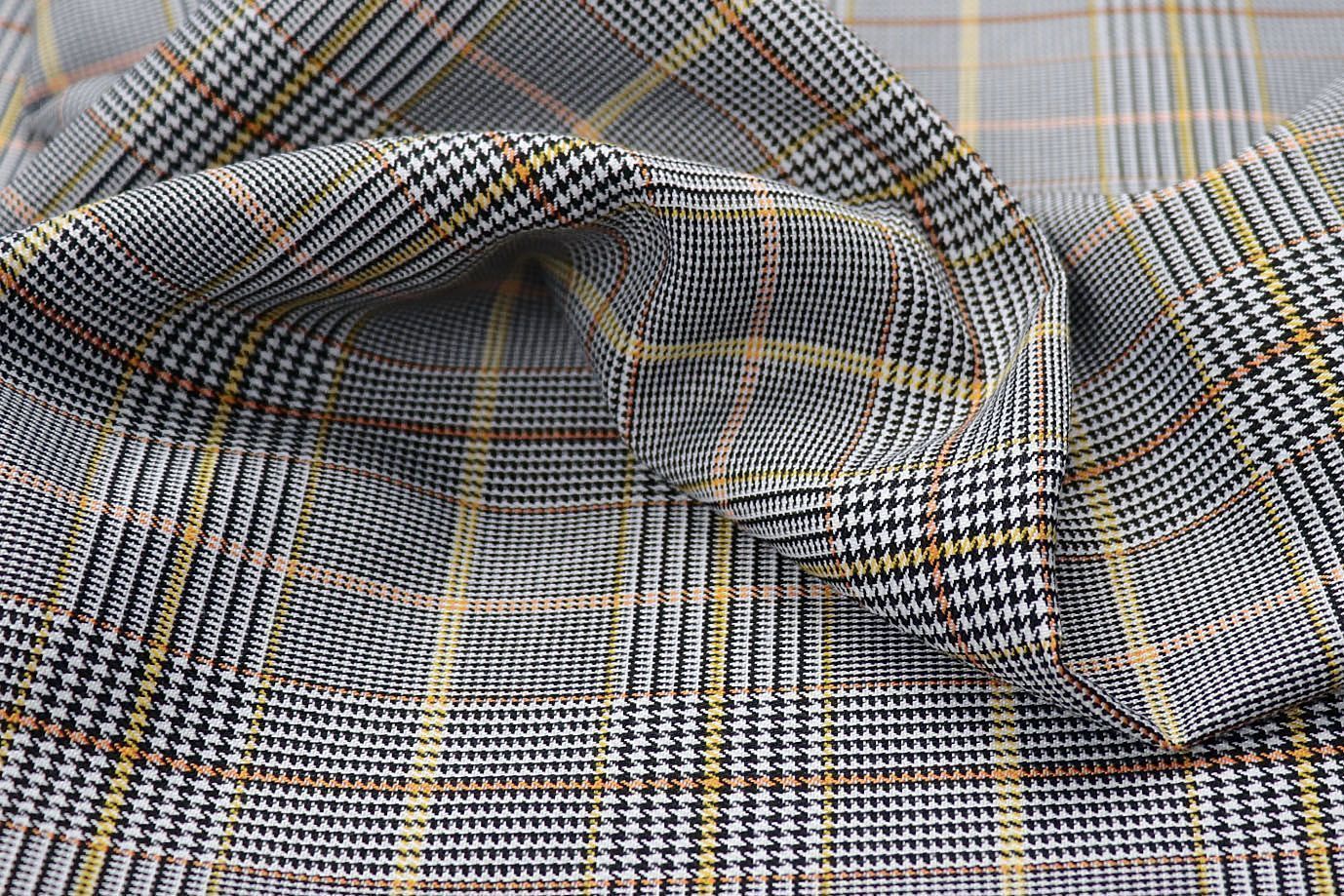 Костюмная ткань принт/клетка серо-желтая 2873-PY/D#10/C#1 25 пог/м.