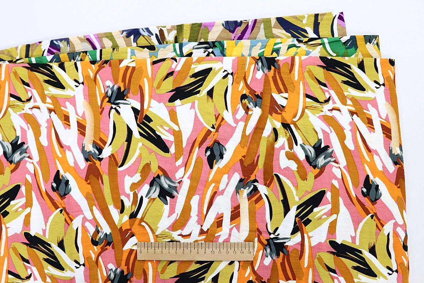 Лен БОХО принт/оранжево-зеленый на розовом 3591-PY/D#9/C#1