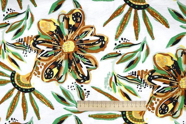Лен БОХО принт/цветы желто-зеленые на белом 3637-PY/D#13/C#1 32 пог/м.