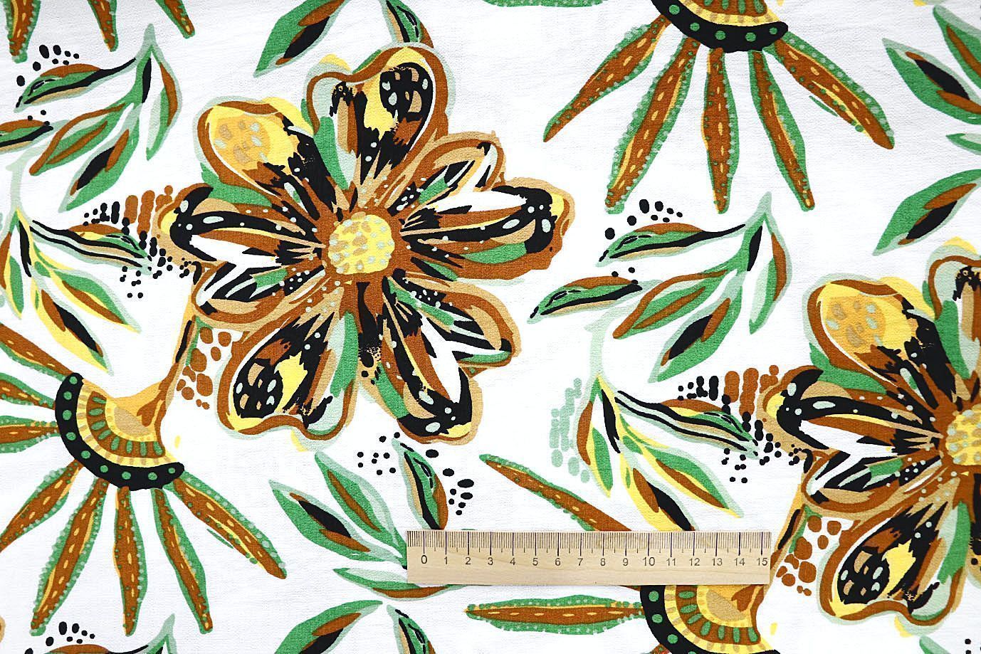 —Лен БОХО принт/цветы желто-зеленые на белом 3637-PY/D#13/C#1 32 пог/м.