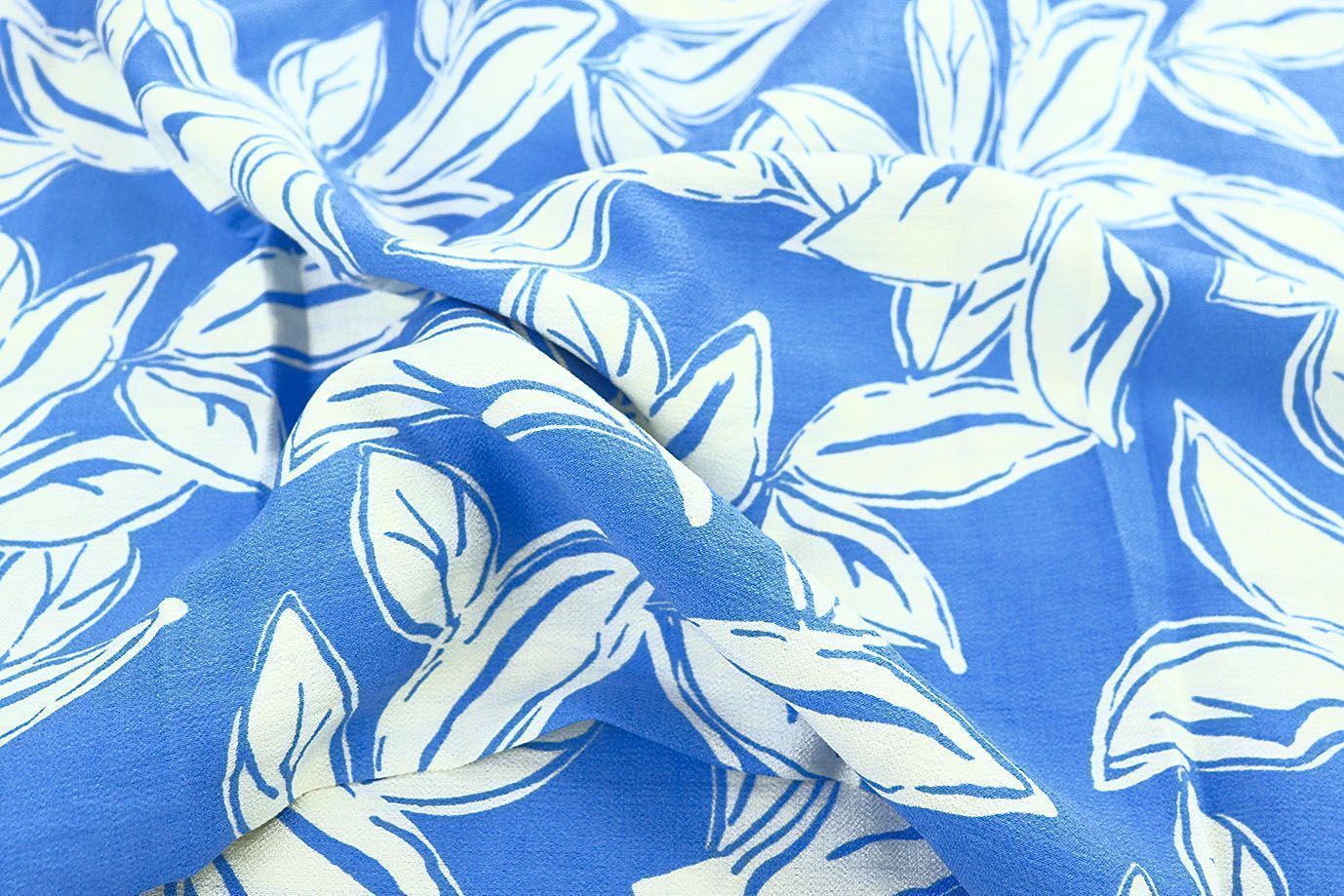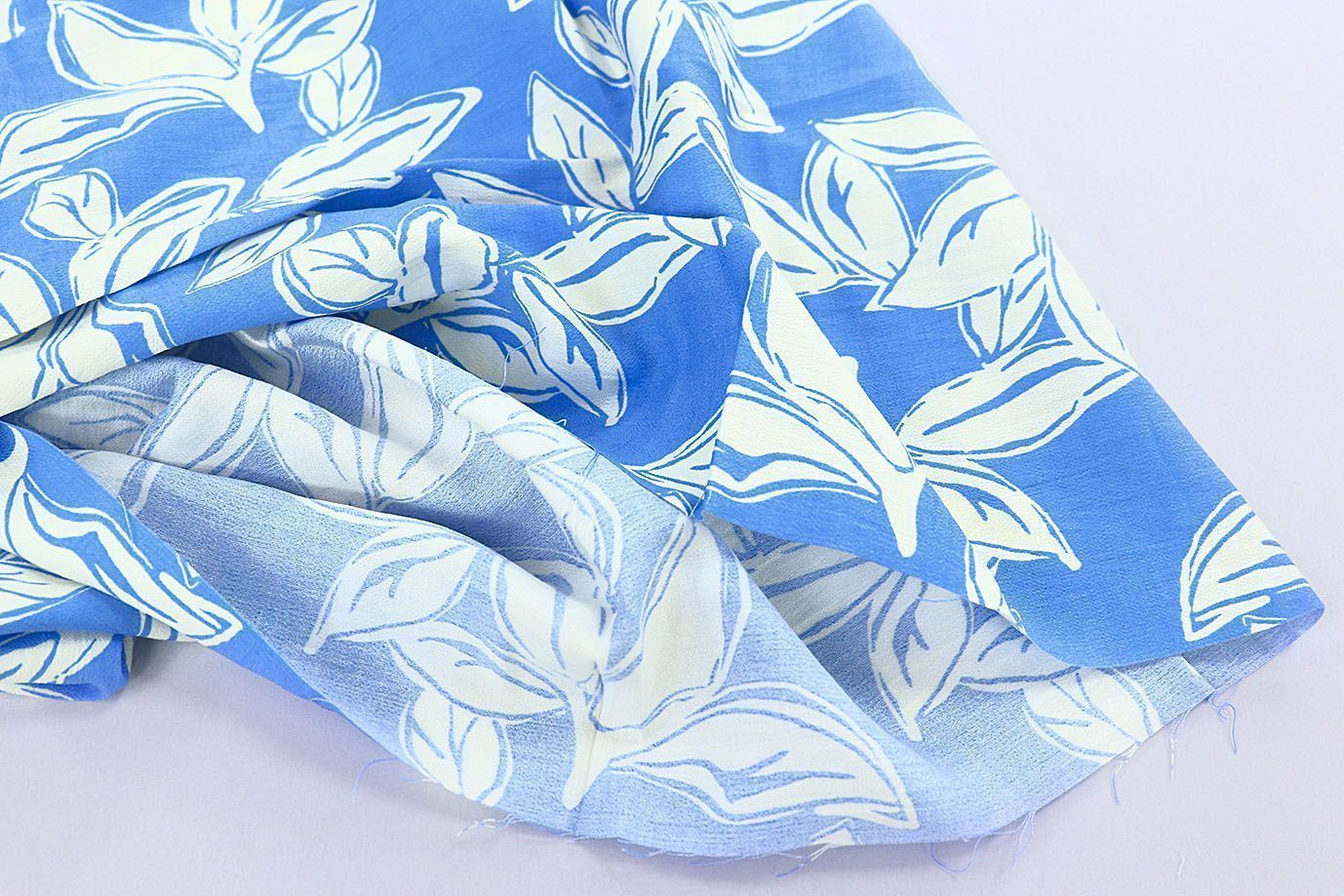Лен БОХО принт/листья белые на синем 3815-PY/D#1/C#2