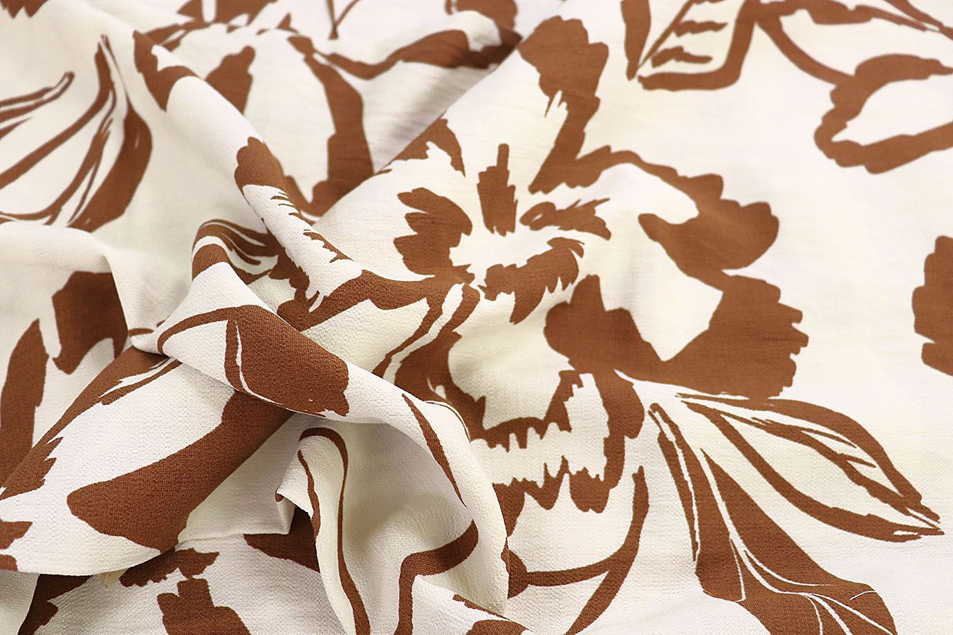Лен БОХО принт/цветы коричневые на молочном 3857-PY/D#10/C#4