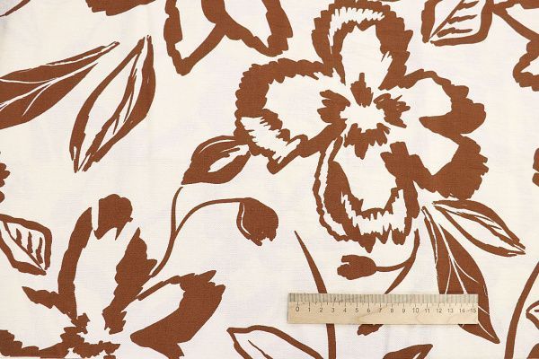 Лен БОХО принт/цветы коричневые на молочном 3857-PY/D#10/C#4 33 пог/м.