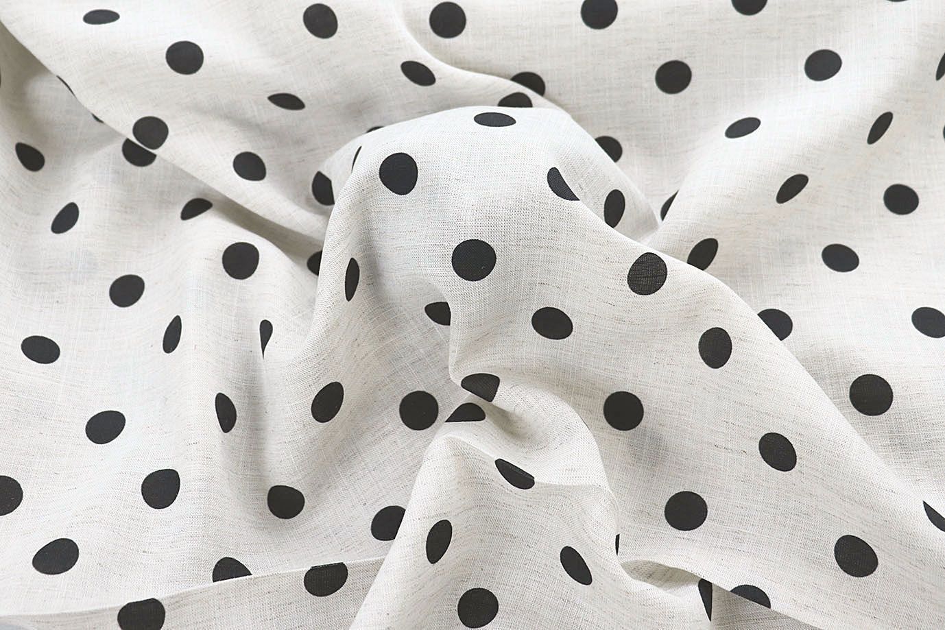 Лен слаб принт/горох черный на белом 4036-PY/C#1