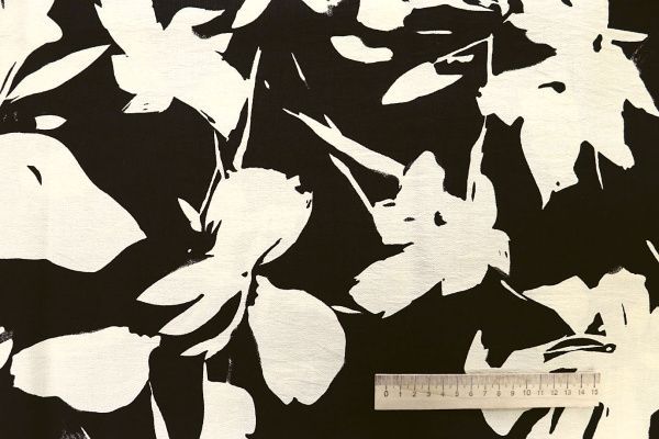 Лен БОХО принт/цветы черные на молочном 4077-PY/D#18/C#1
