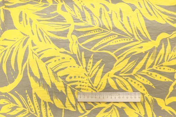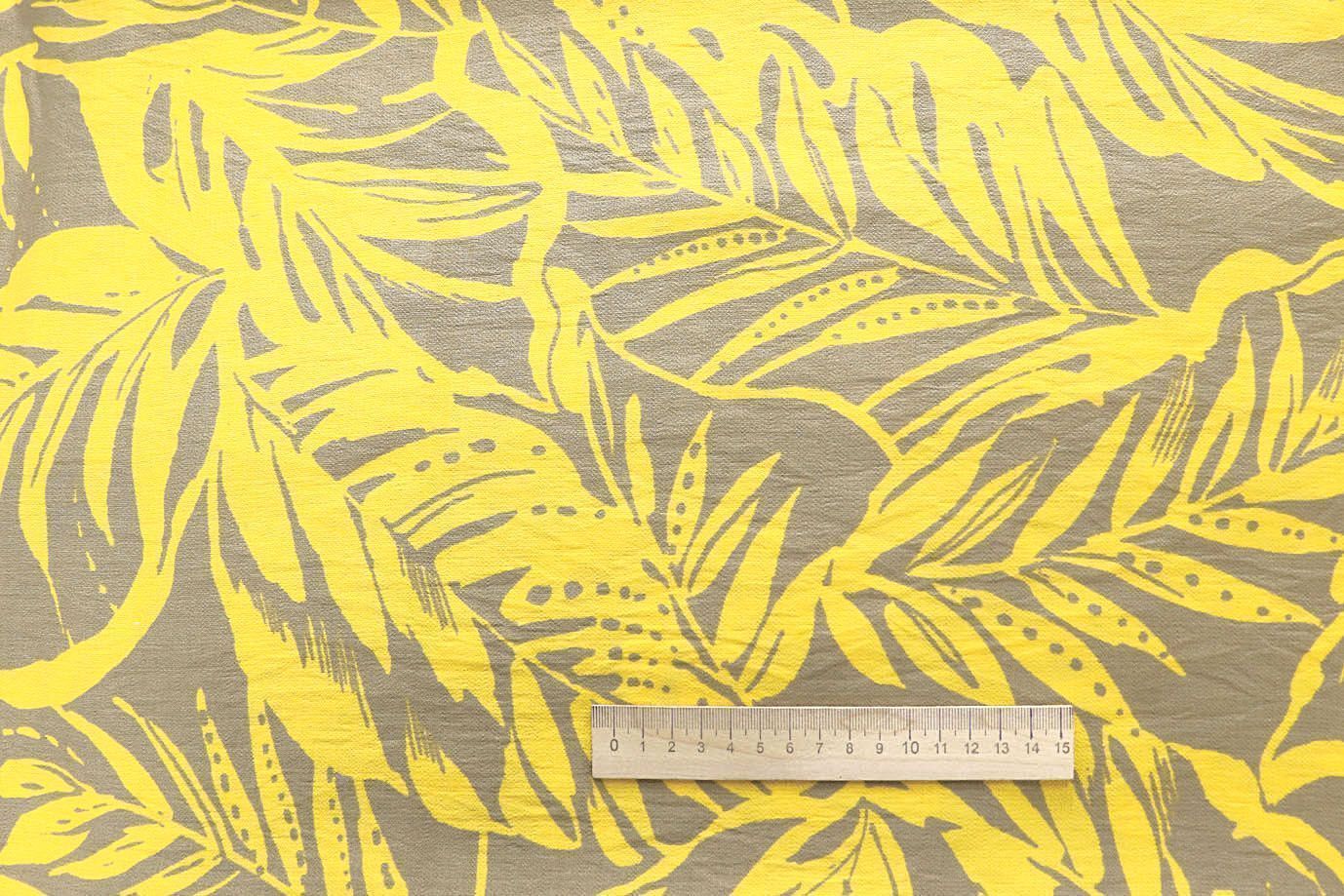 Лен БОХО принт/листья желтые на арахисовом 4077-PY/D#5/C#1 32 пог/м.