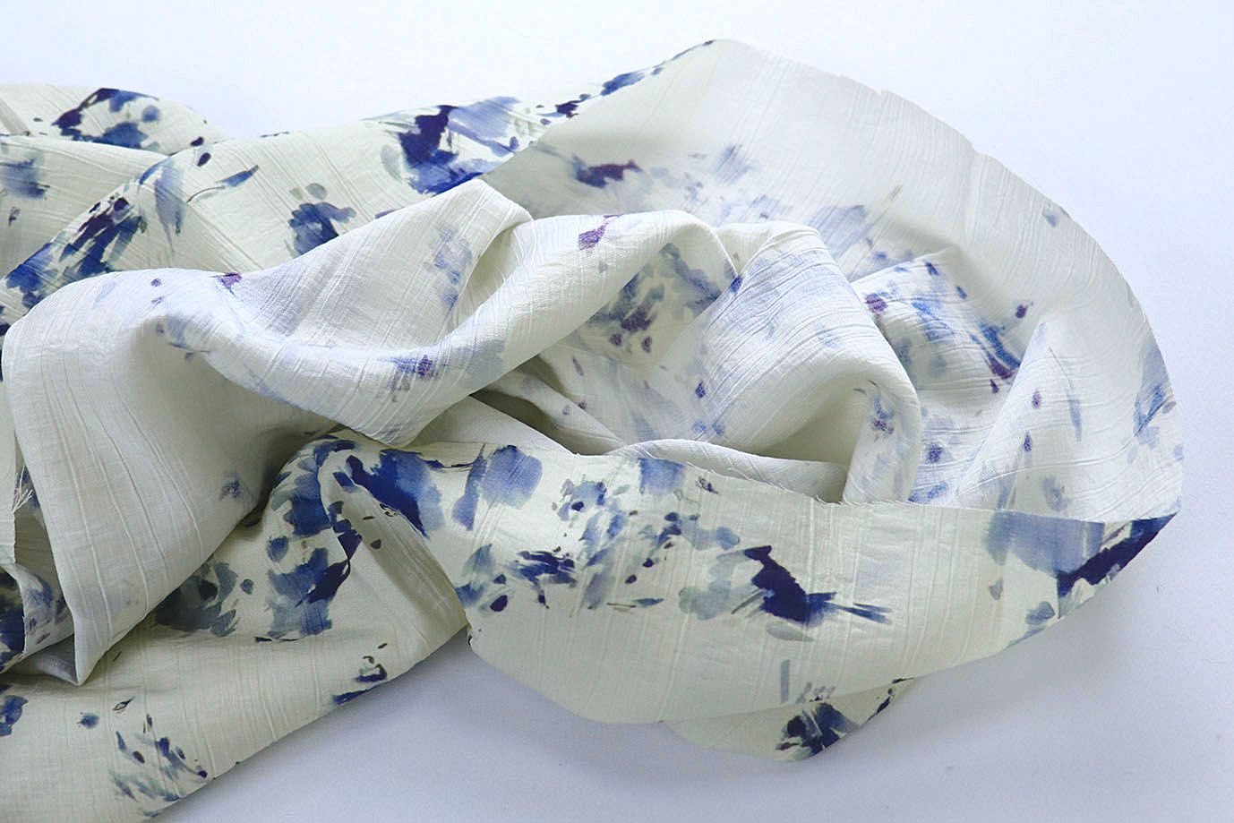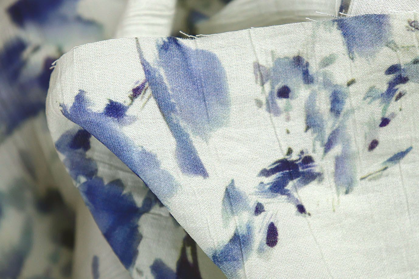 Лен "Медея" принт/пятна синие на молочном 4098-PY/D#2/C#1