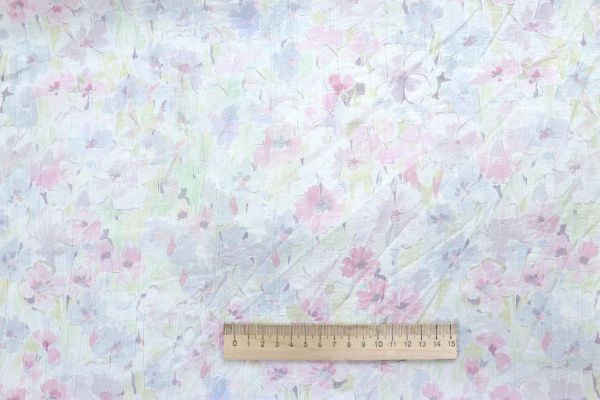 Лен "Медея" принт/цветы сине-розовые на белом 4098-PY/D#3/C#1 34 пог/м.