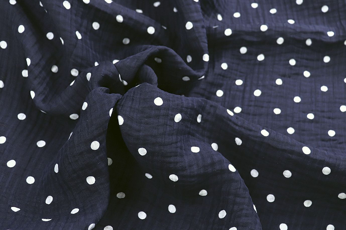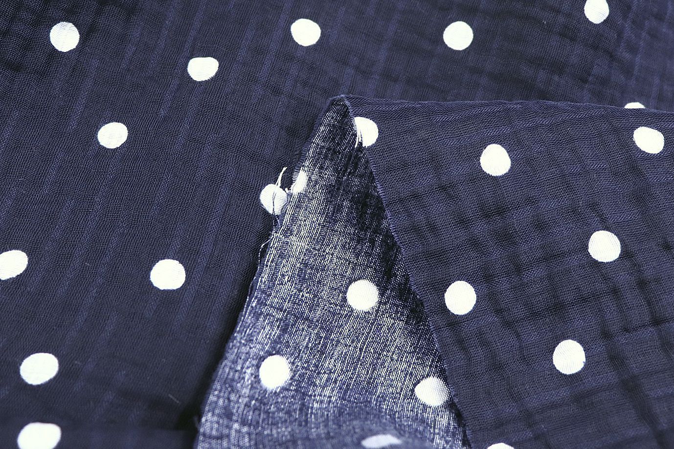 Лен креш принт/горох белый на темно-синем 4154-PY/D#1/C#5