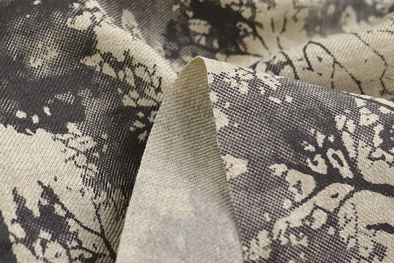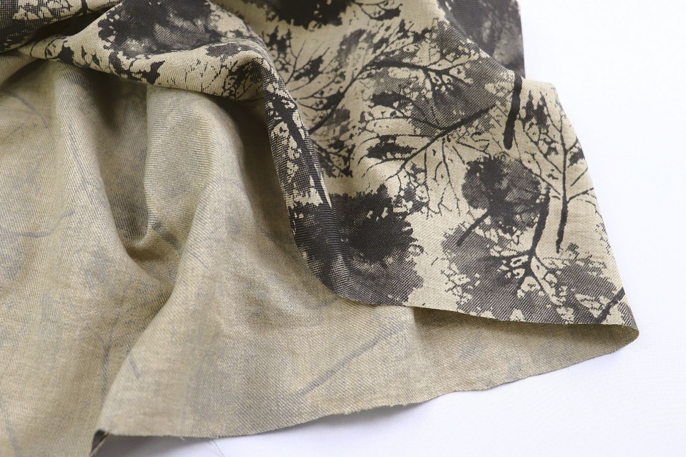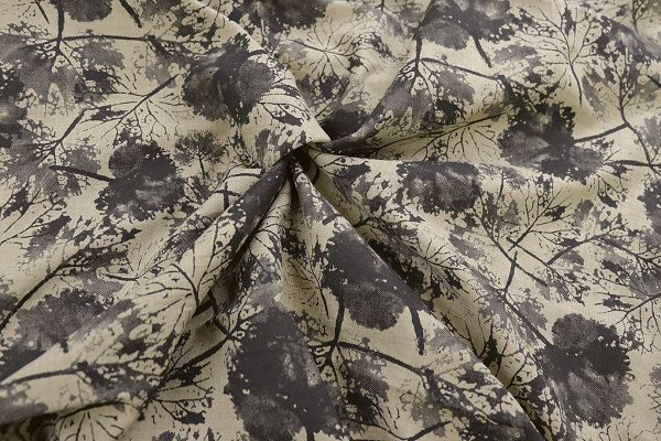 Лен Тайвань принт/листья серые на темно-бежевом 1461-PY/D#1/C#2 31 пог/м.