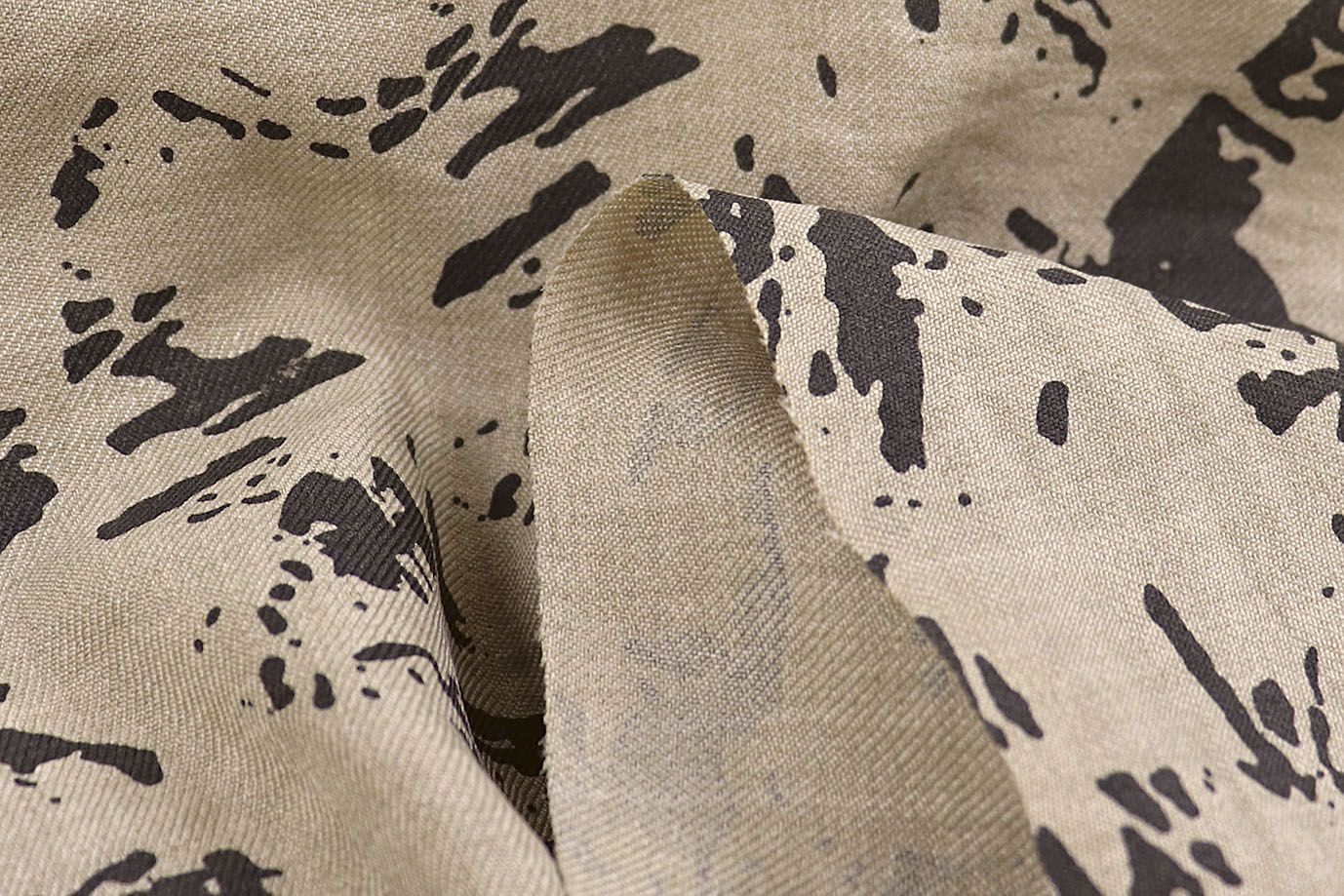 Лен Тайвань принт/пятна серые на бежевом 1461-PY/D#3/C#1