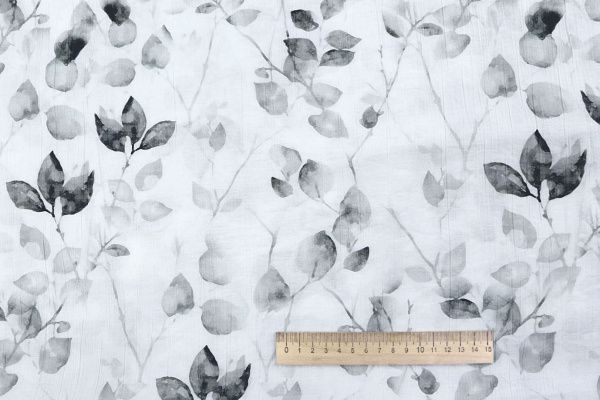 Лен "Медея" принт/листья серые на белом 4239-PY/D#9/C#1