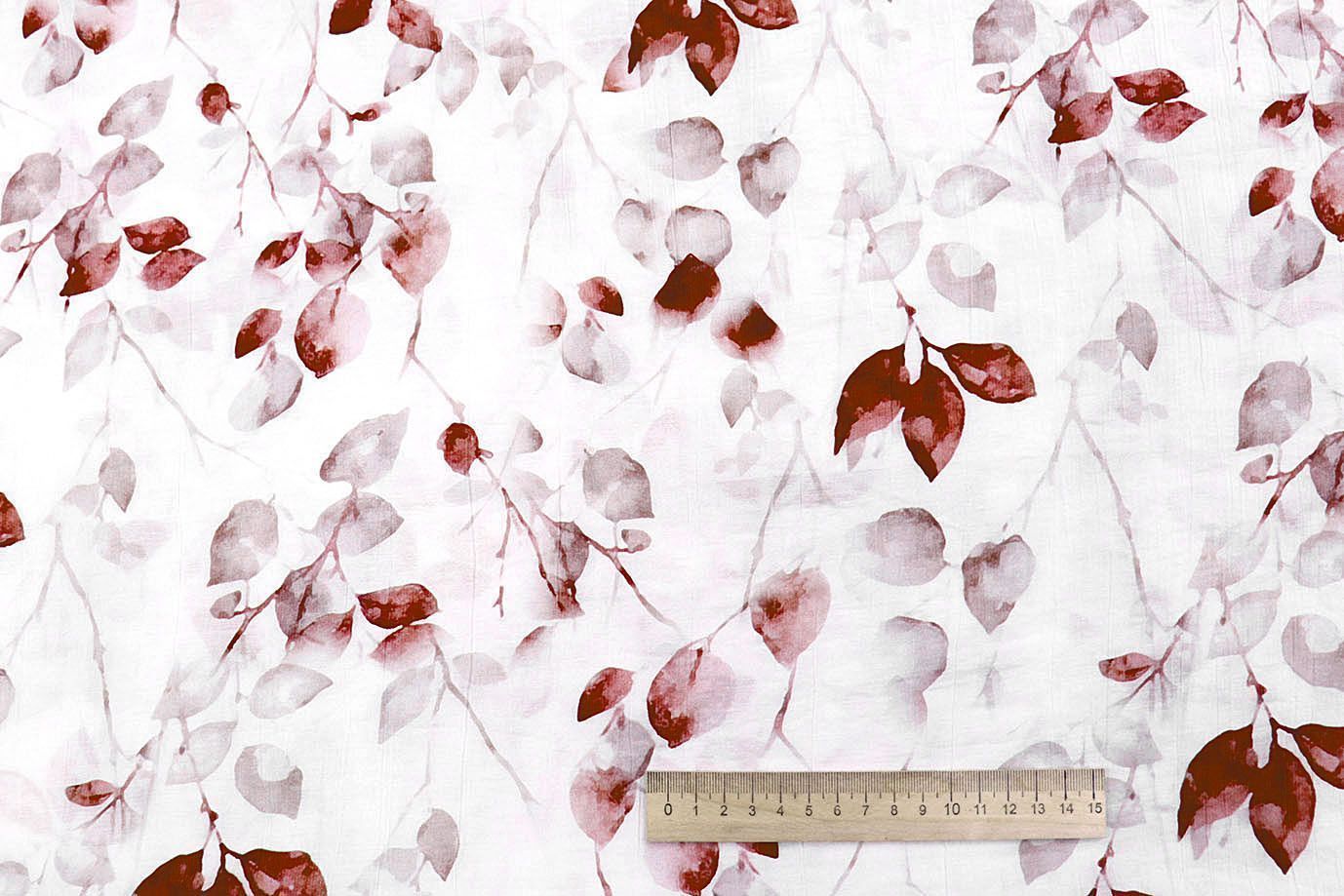 Лен "Медея" принт/листья красные на белом 4239-PY/D#9/C#2