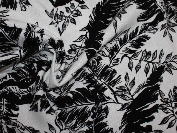Лен принт/листья черные на белом VT-10393/D6/C#1 не использовать! 25 пог/м.