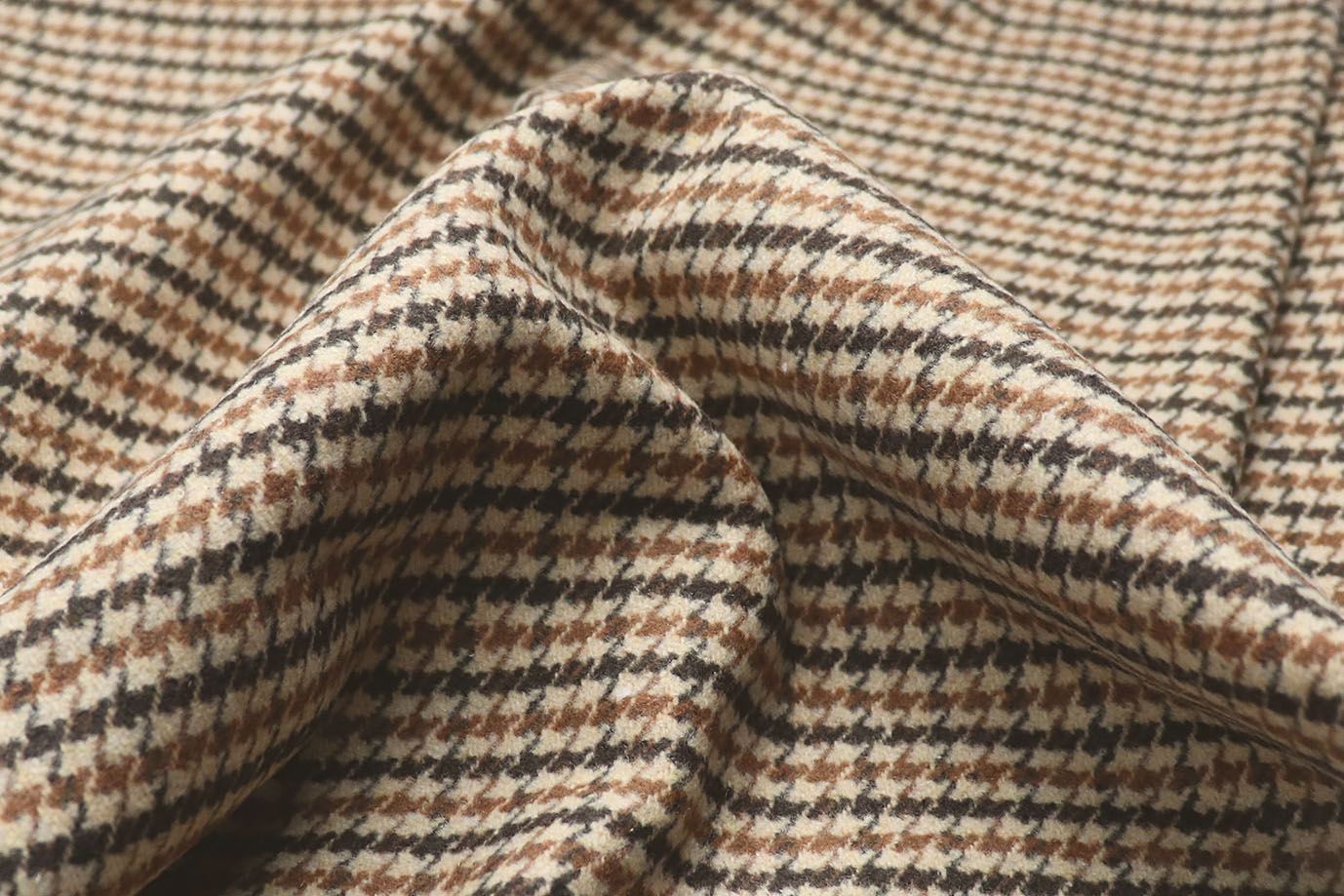 —Пальтовая ткань принт/гусиная лапка черно-коричневая на бежевом 908-15192/C#3 34.5 пог/м.