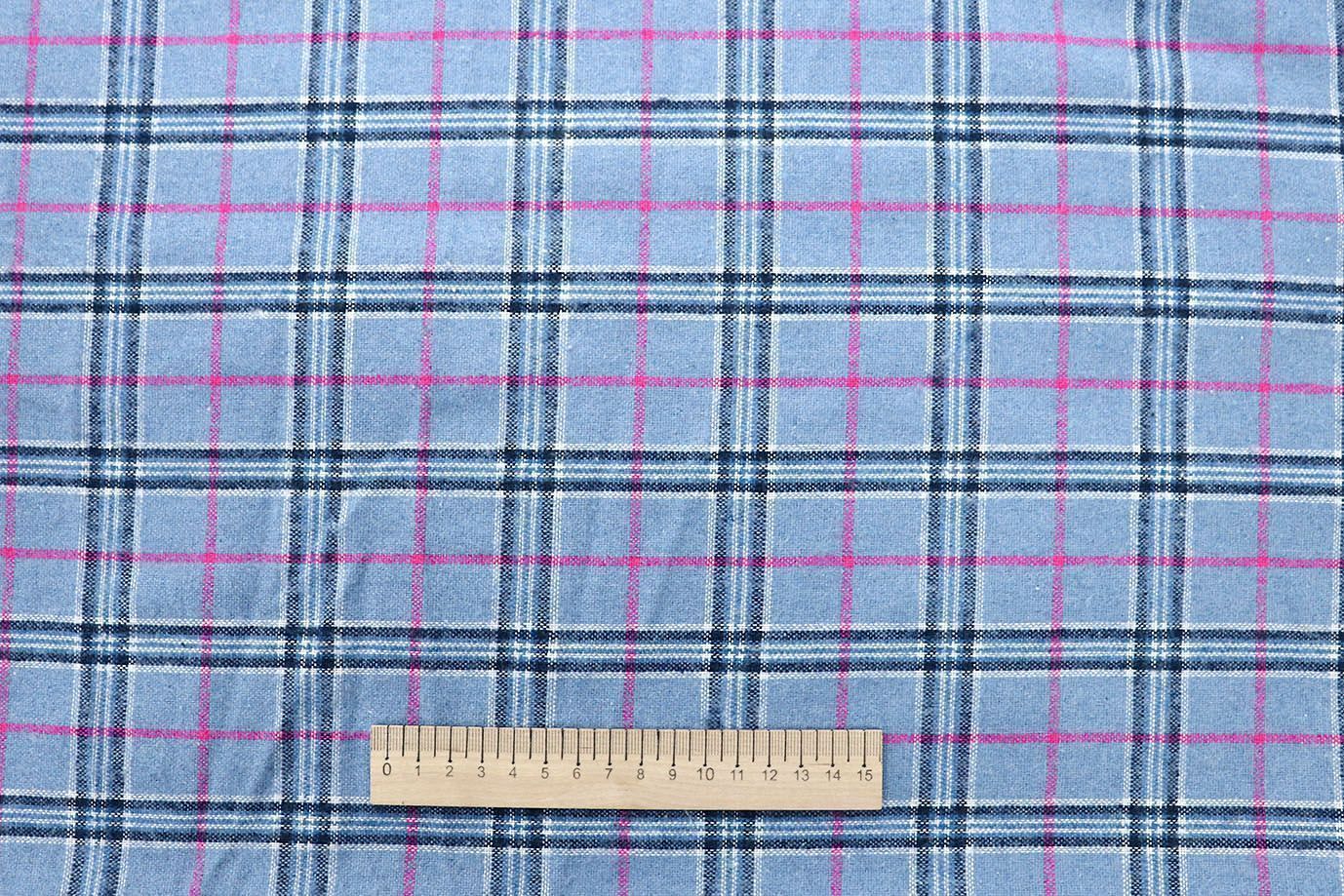 Пальтовая ткань принт/клетка сине-розовая на голубом 681-78041/C#9 50 пог/м.