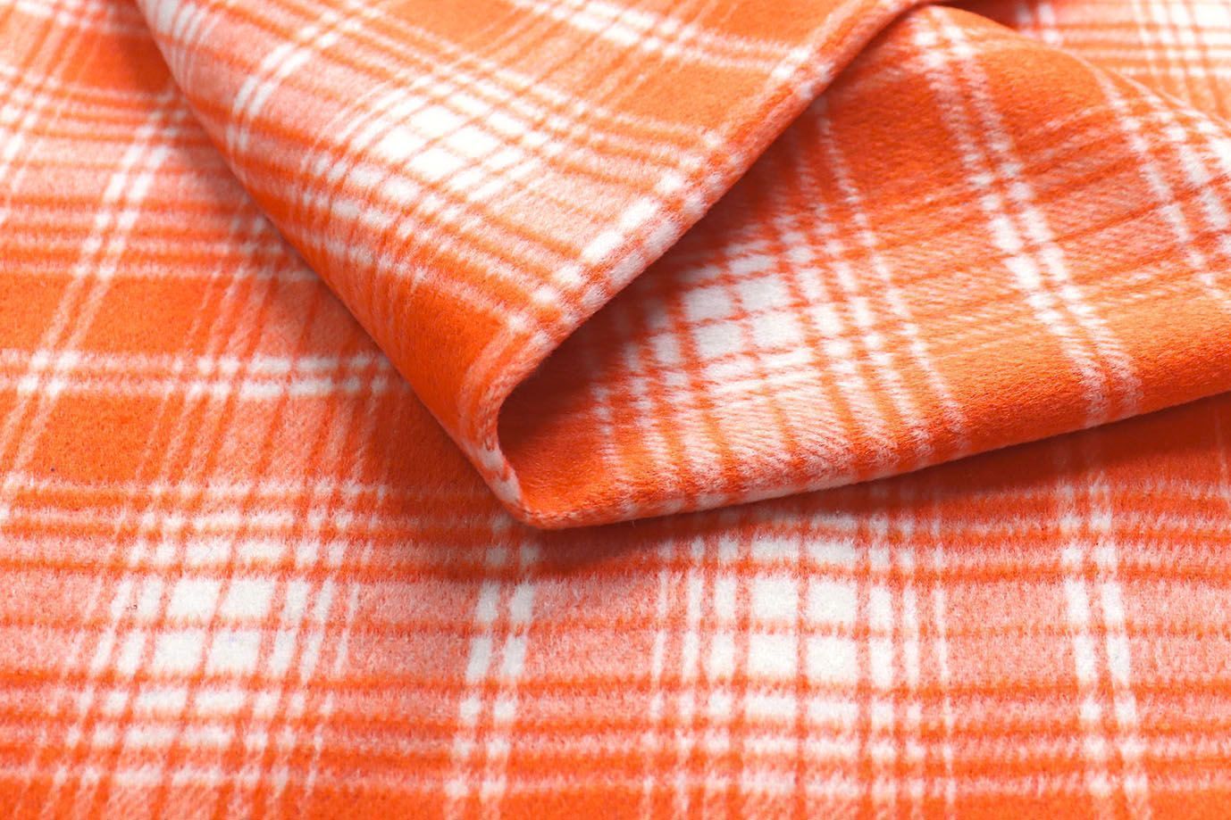 Пальтовая ткань принт/клетка бело-оранжевая 908-201/C#5