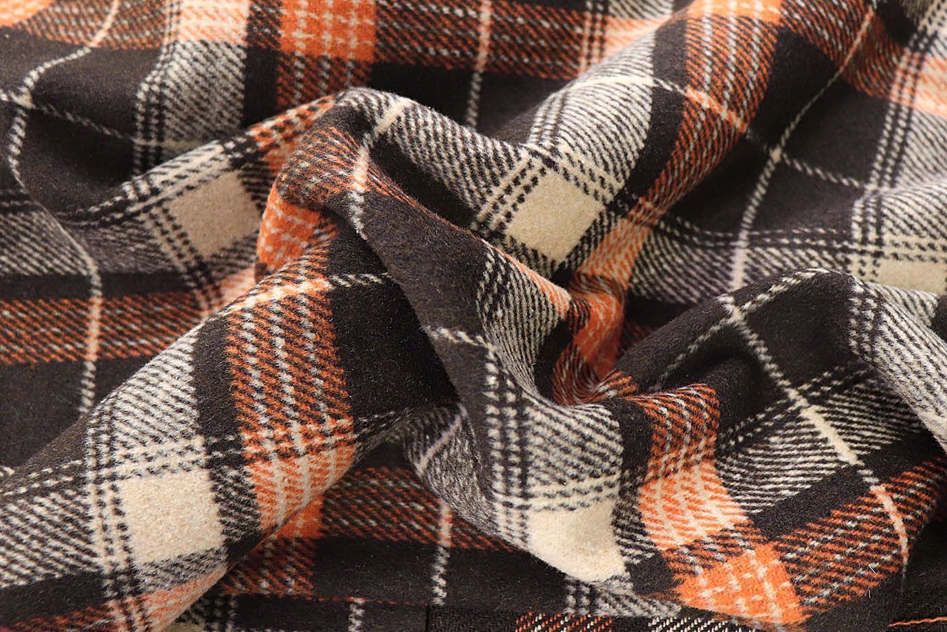 Пальтовая ткань принт/клетка черно-оранжевая 911-20009/C#4