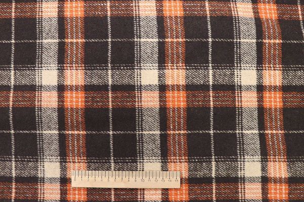 Пальтовая ткань принт/клетка черно-оранжевая 911-20009/C#4 50 пог/м.