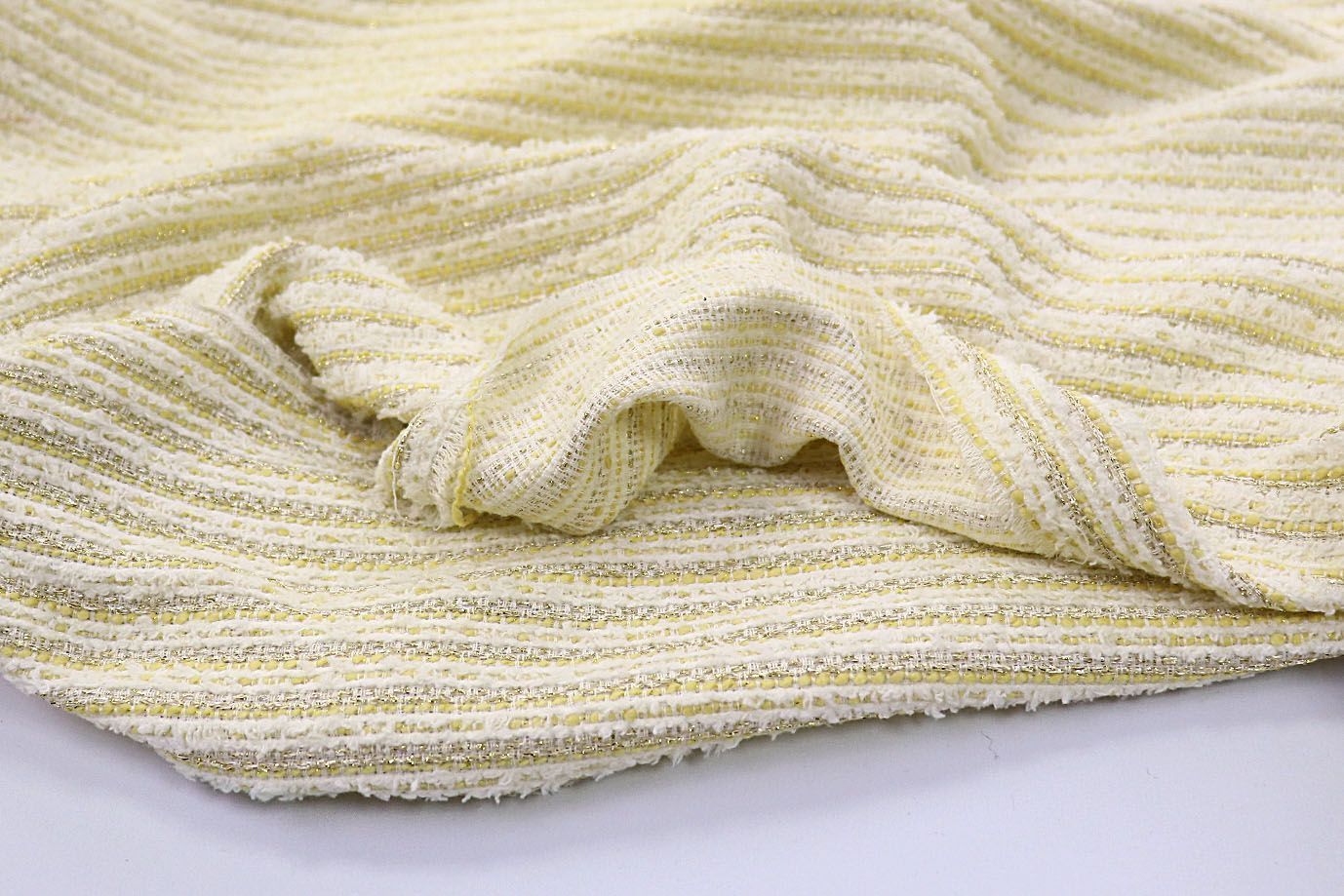 Пальтовая ткань Твид (Шанель) с люрексом/полоска молочная 2095/C#3 25 пог/м.