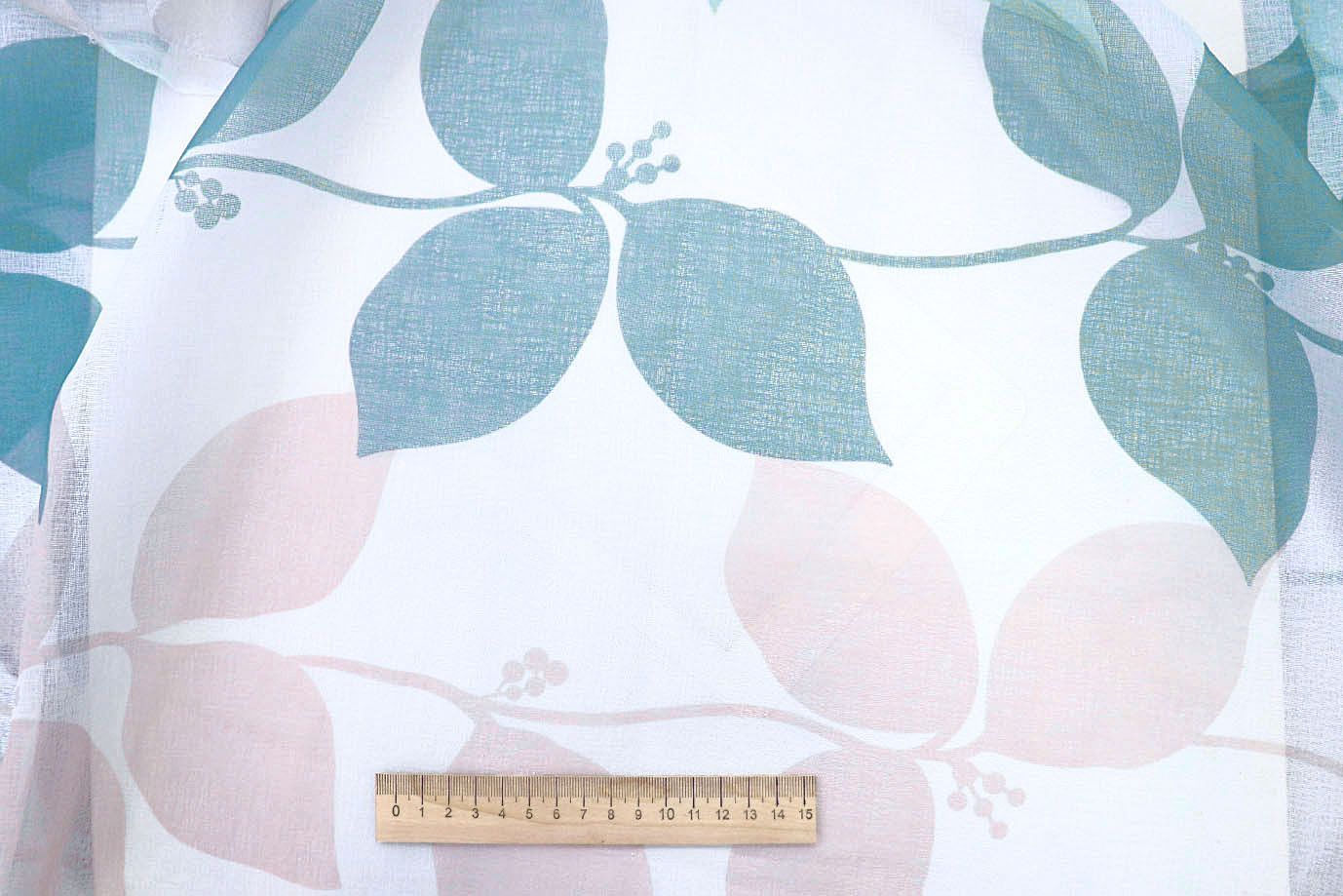 Тюль принт/листья бирюзово-розовые WBC23/C#8A 30 пог/м.
