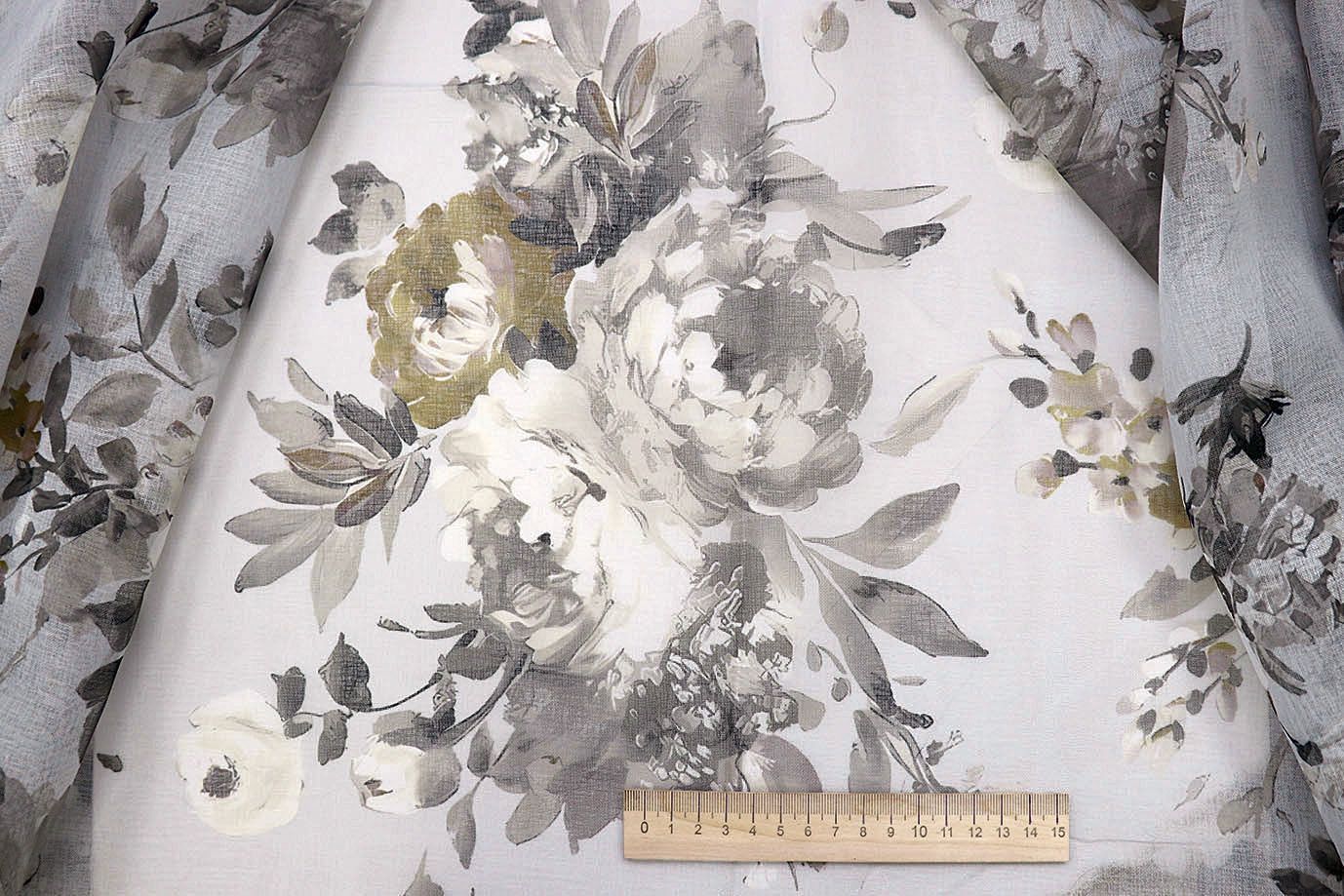 —Тюль принт/цветы серо-зеленые WBC23/C#17A 30 пог/м.