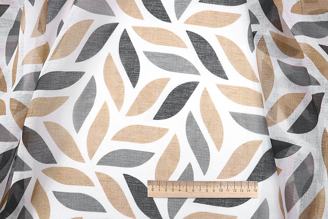 Тюль принт/листья серо-бежевые WBC23/C#10A